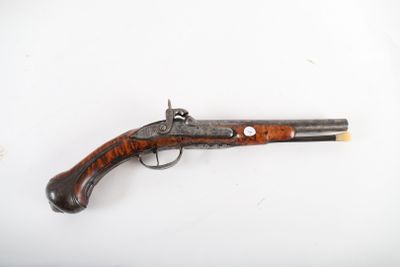PISTOLET DE CARROSSE A SILEX. Canon rond à bourrlets.
