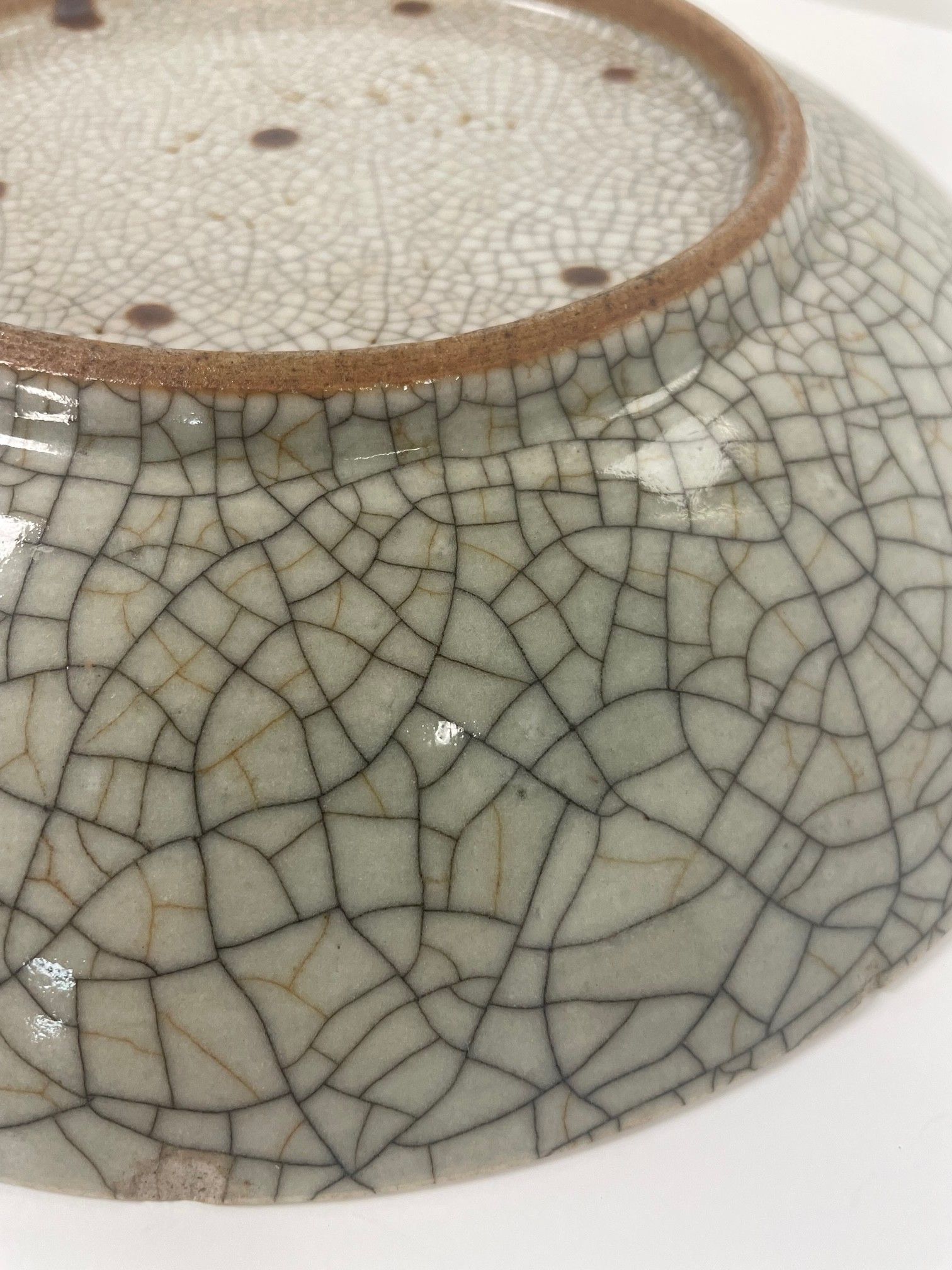 CHINE - XIXe siècle. Coupe en grès à couverte céladon craquelé de type guan. (Eclat et choc au rebord) Diam. 27,5 cm. Expert : Cabinet Portier, Paris.
