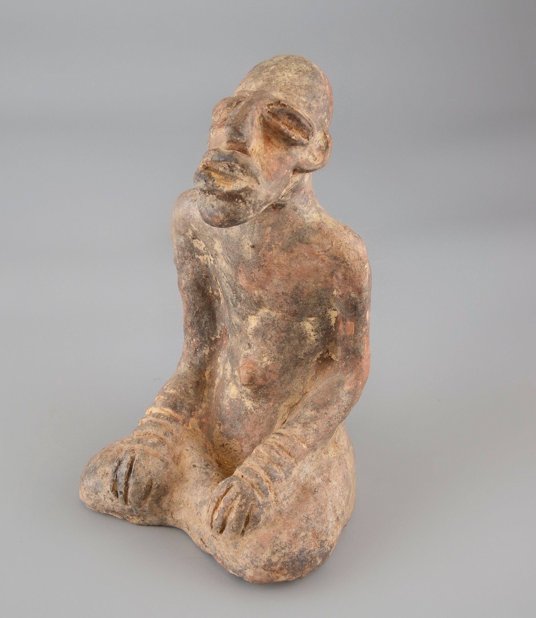 MALI - DJENNE. Statue en terre cuite représentant un personnage assis en tailleur. Ht. 24cm.