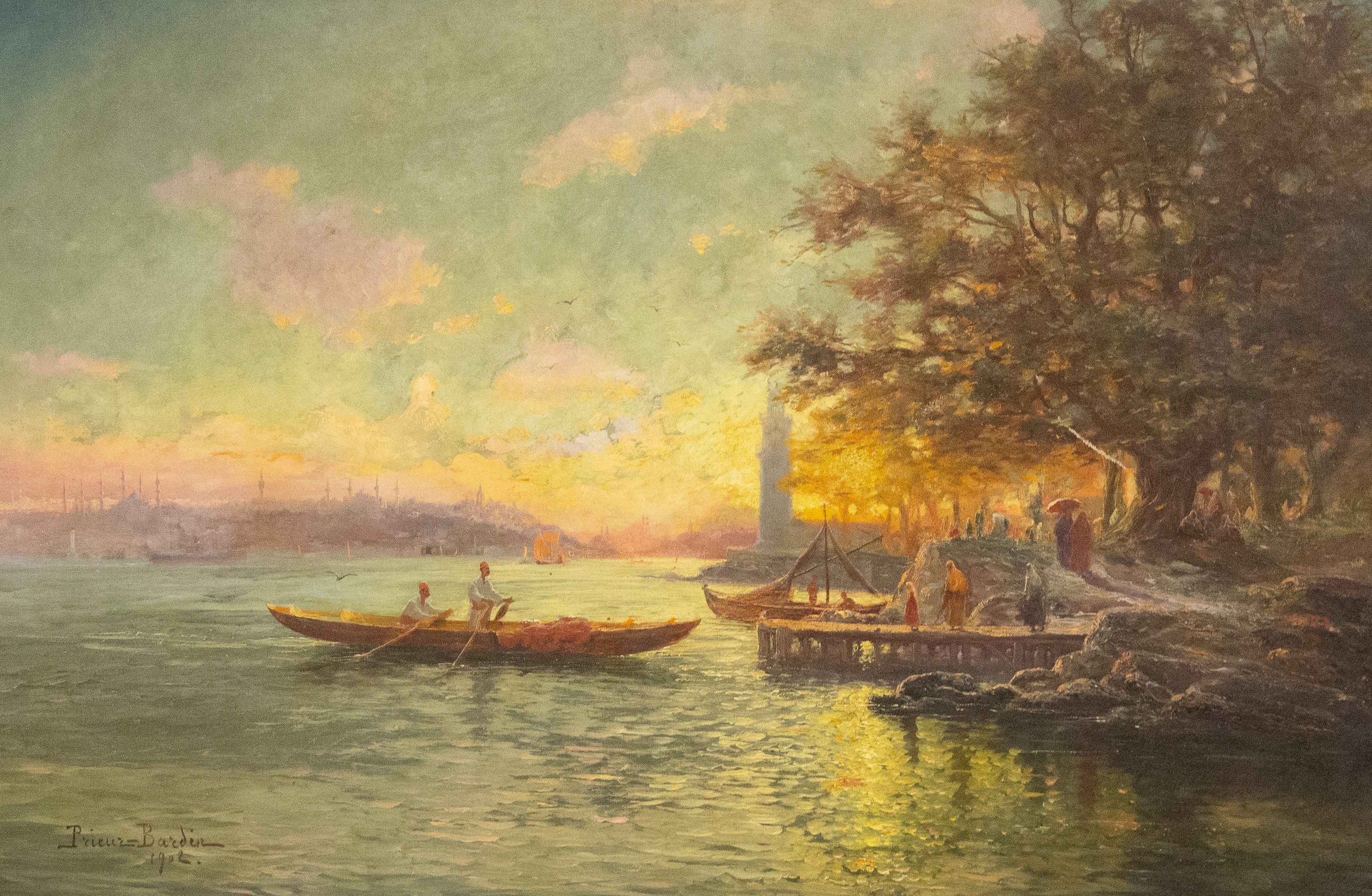 Eugène Antoine PRIEUR-BARDIN (1860-1905). « Pécheurs sur les rives du Bosphore, Istanbul ». Huile sur toile signée et datée 1902 en bas à droite. 62x92cm. Déchirure. Expert : Cabinet Chanoit, Paris.