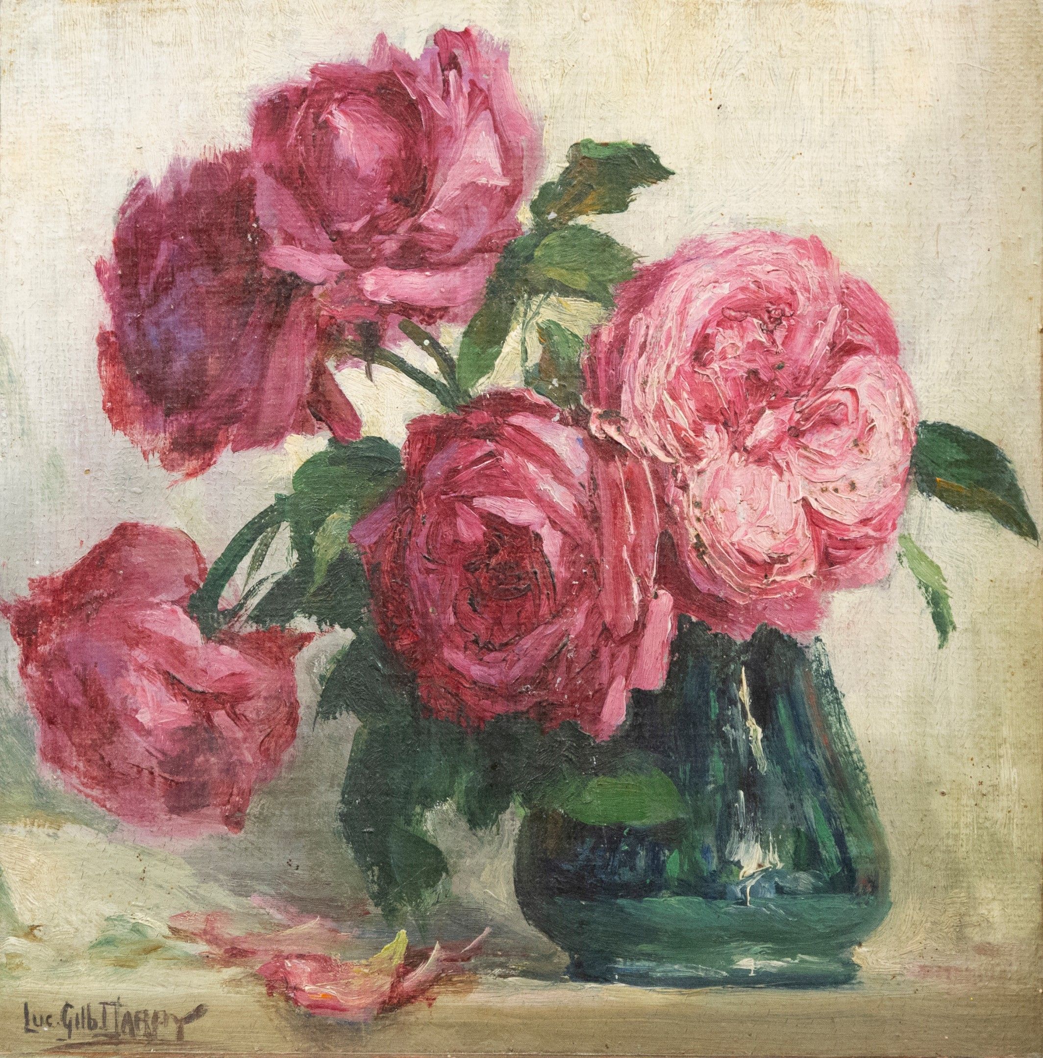 Lucien Gilbert DARPY (1875-?) "Bouquet de roses". Huile sur panneau, signée en bas à gauche. 25,5x26cm.