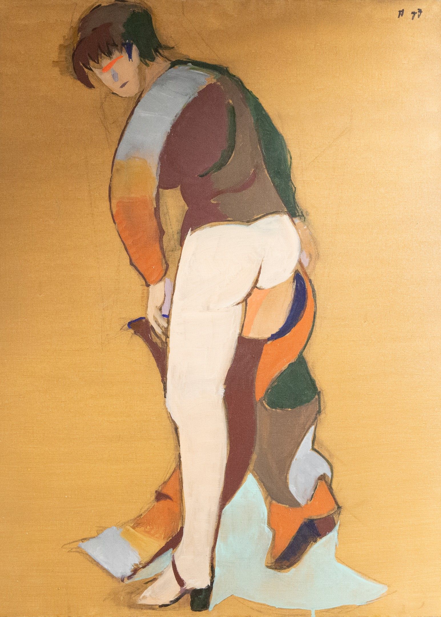 Jean HELION (1904-1987). "La Méprise". Acrylique sur toile signée et datée 77 en haut à droite, contresigné et daté au dos. Intégré au catalogue raisonné de l'artiste sous la ref 016. Provenance: Vente Thierry de Maigret, Paris-18 juin 2009, n° 215. 100,5x73,5cm. Expert : Cabinet Chanoit, Paris.