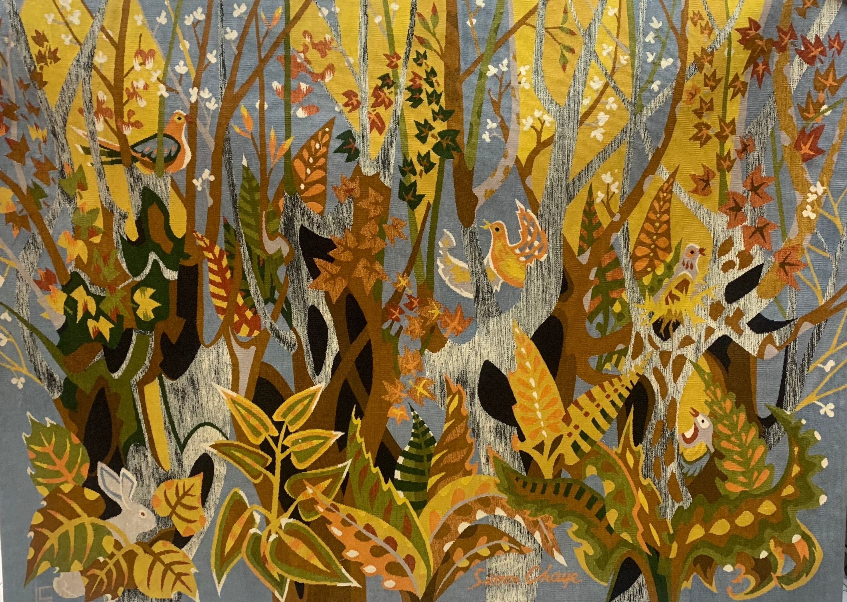 Simon CHAYE (1930). "Grand Taillis". Tapisserie d'après un carton de l'artistetissé par l'atelier Camille Legoueix à Aubusson. 128x176cm.