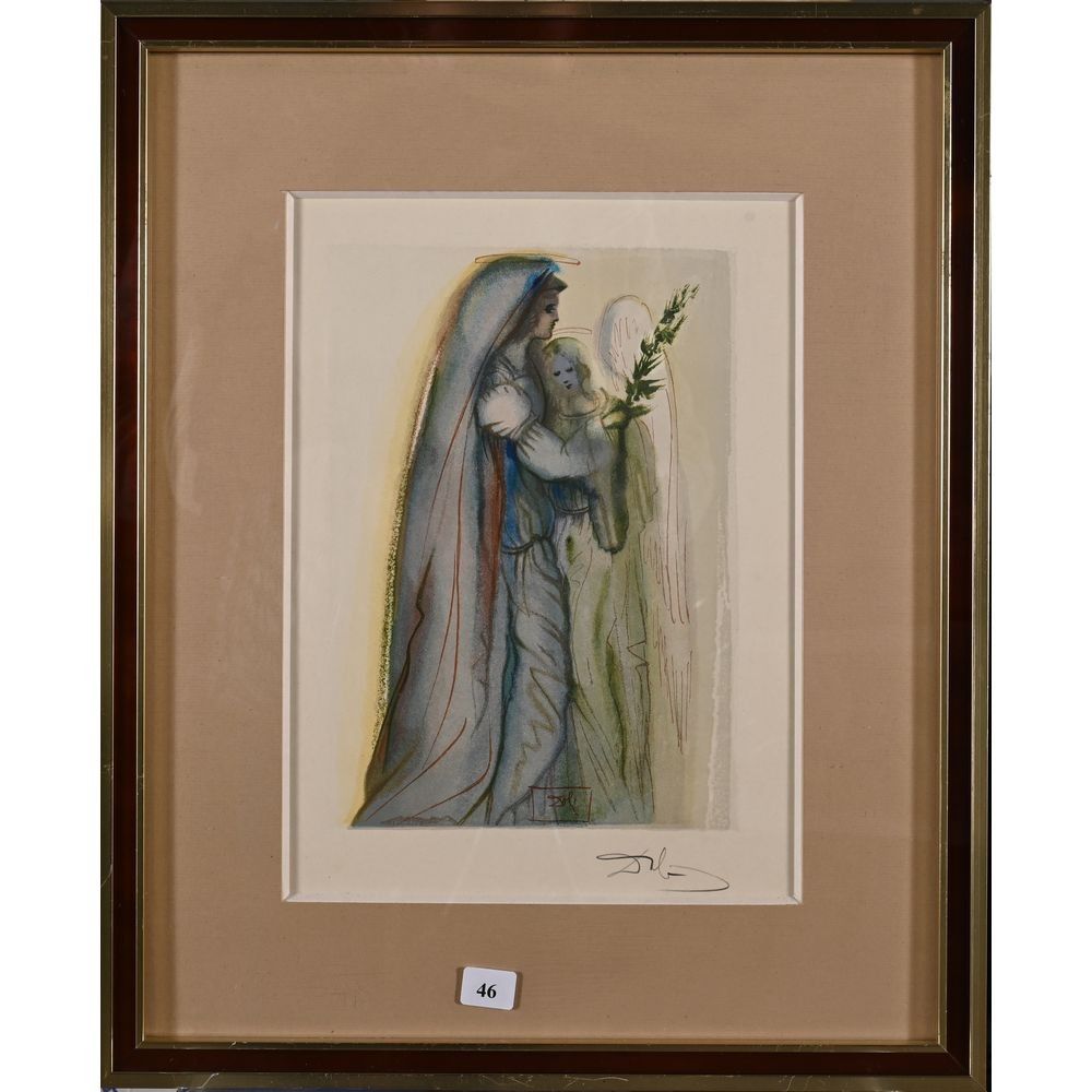 DALI Salvador. (1904-1989). La divine comédie de Dante « Le paradis, préparations à la dernière prière ». Bois gravé original 1960 et signé en bas à droite. H.29 L.21.