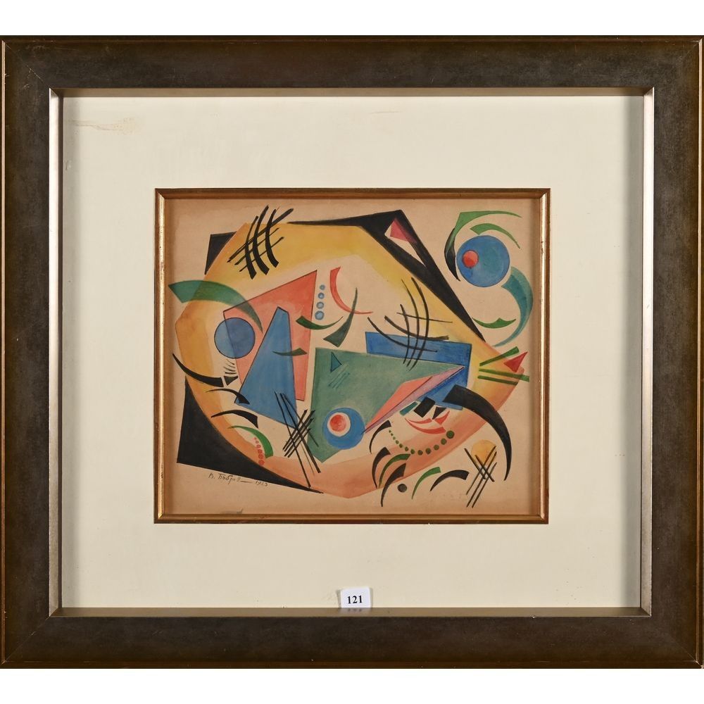 BOBROV Vasilii Dmitrievich. (1899-1970). « Composition abstraite ». Aquarelle signée et datée 1923. H.24 L.28.