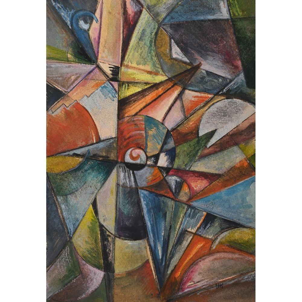 CHICHAGOVA Olga et Galina. (1882-1958) et (1891-1966). (Elèves de RODCHENKO). « Composition constructiviste ». Aquarelle, gouache et traits de fusain signée des monogrammes dont l’un inversé avec la date 22. H.30 L.21.