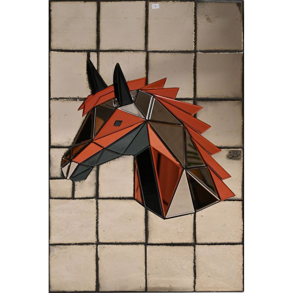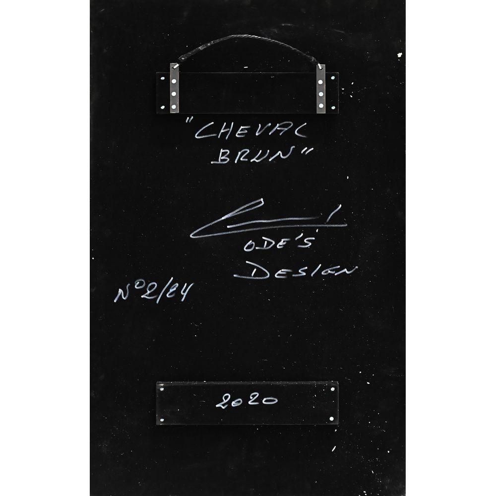 Olivier De Schrijver (?1958), école Belge, Ode’s Design Editeur Comme Chez Vous Art - 1 miroir « Cheval brun » en couleurs et verre antique, l’arrière du miroir en velours, +/- 60 x 100 cm, signé et numéroté 2/24.
