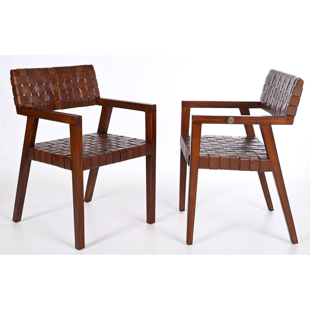Olivier De Schrijver (?1958), école Belge, Ode’s Design Editeur Comme Chez Vous Art - 2 fauteuils « Boss » Deluxe en cuir brun naturel et bois acajou naturel, avec finition cuir à l’arrière du dos et accoudoirs, signés et numérotés 79-80/240.