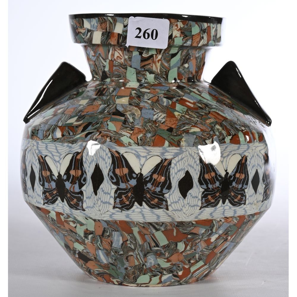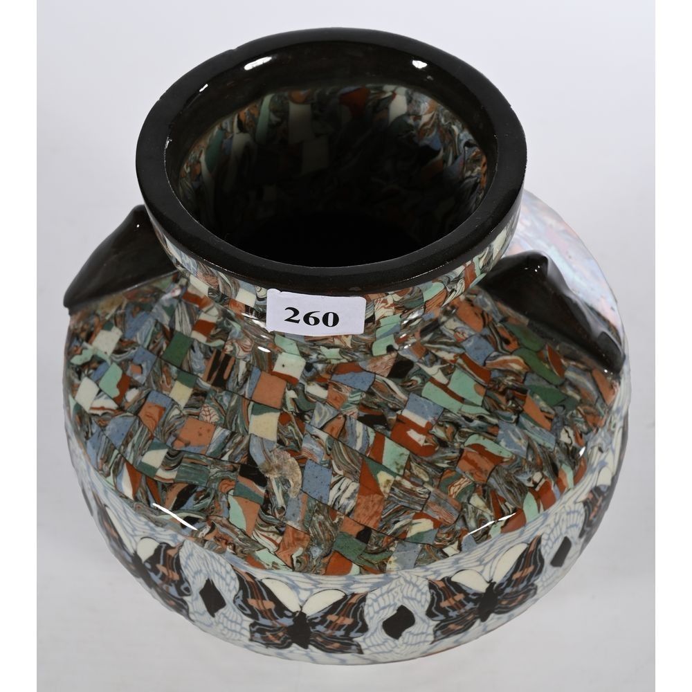 VALLAURIS. GERBINO Jean. (1876-1966). VASE en terre à décor d’une frise de papillons. Signé. H.15.