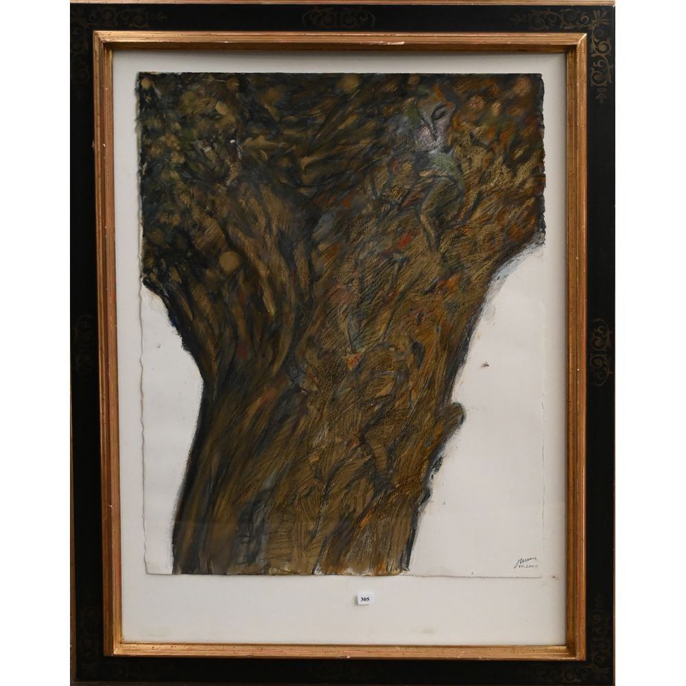 SIGNATURE illisible. « Tronc d’arbre ». Aquarelle sur papier datée 2005. H. ???? L.57.