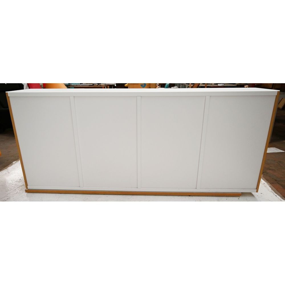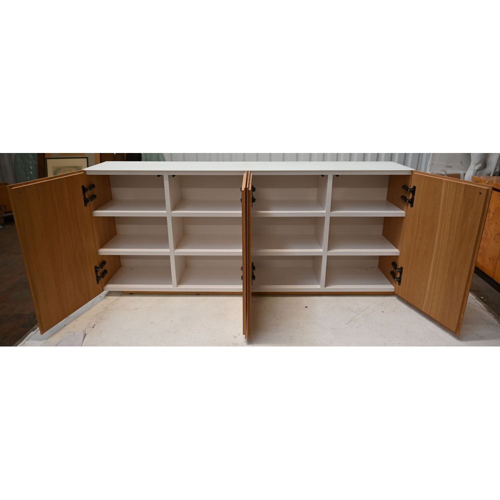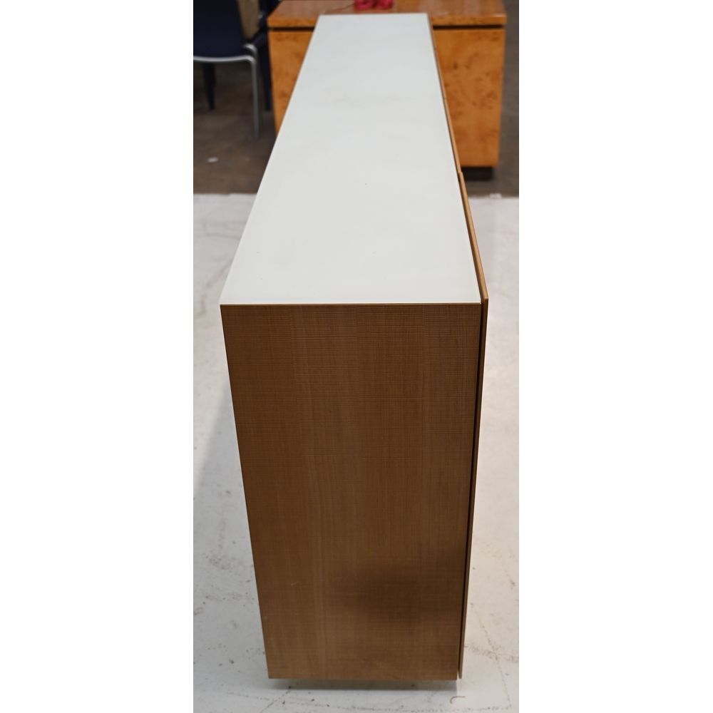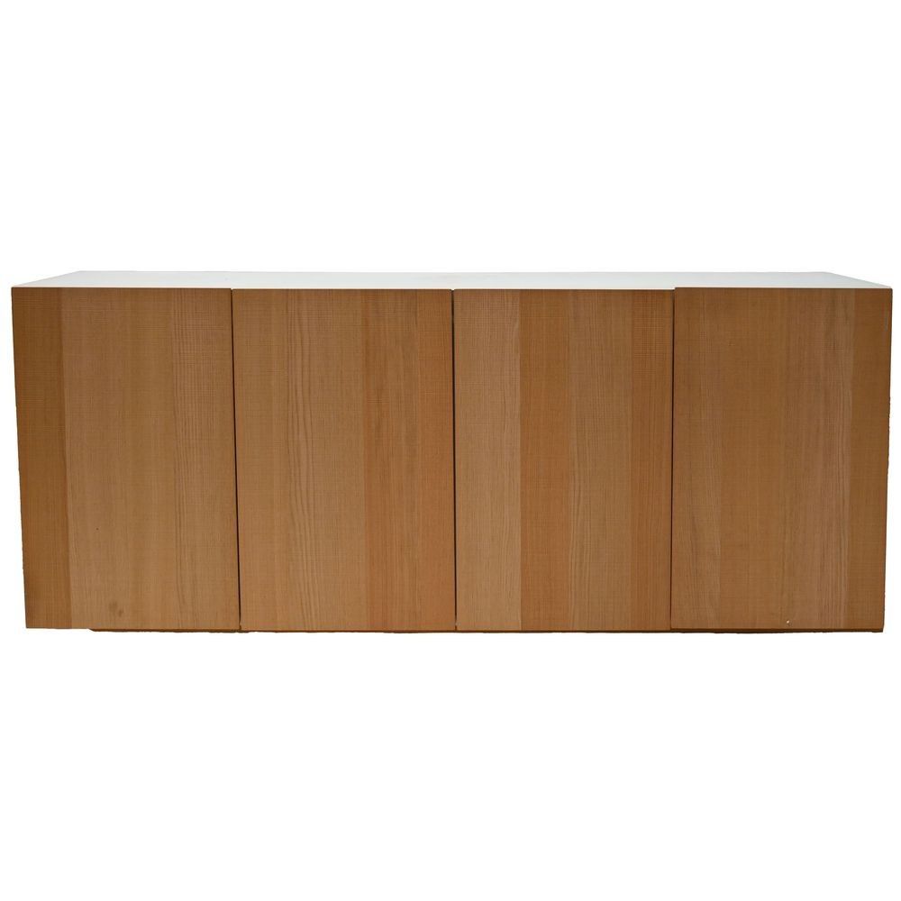 MEUBLE DE RANGEMENT MODERNE en chêne à placage en mélaminé hêtre. Il ouvre par 4 portes. H.93 L.211 P.40.