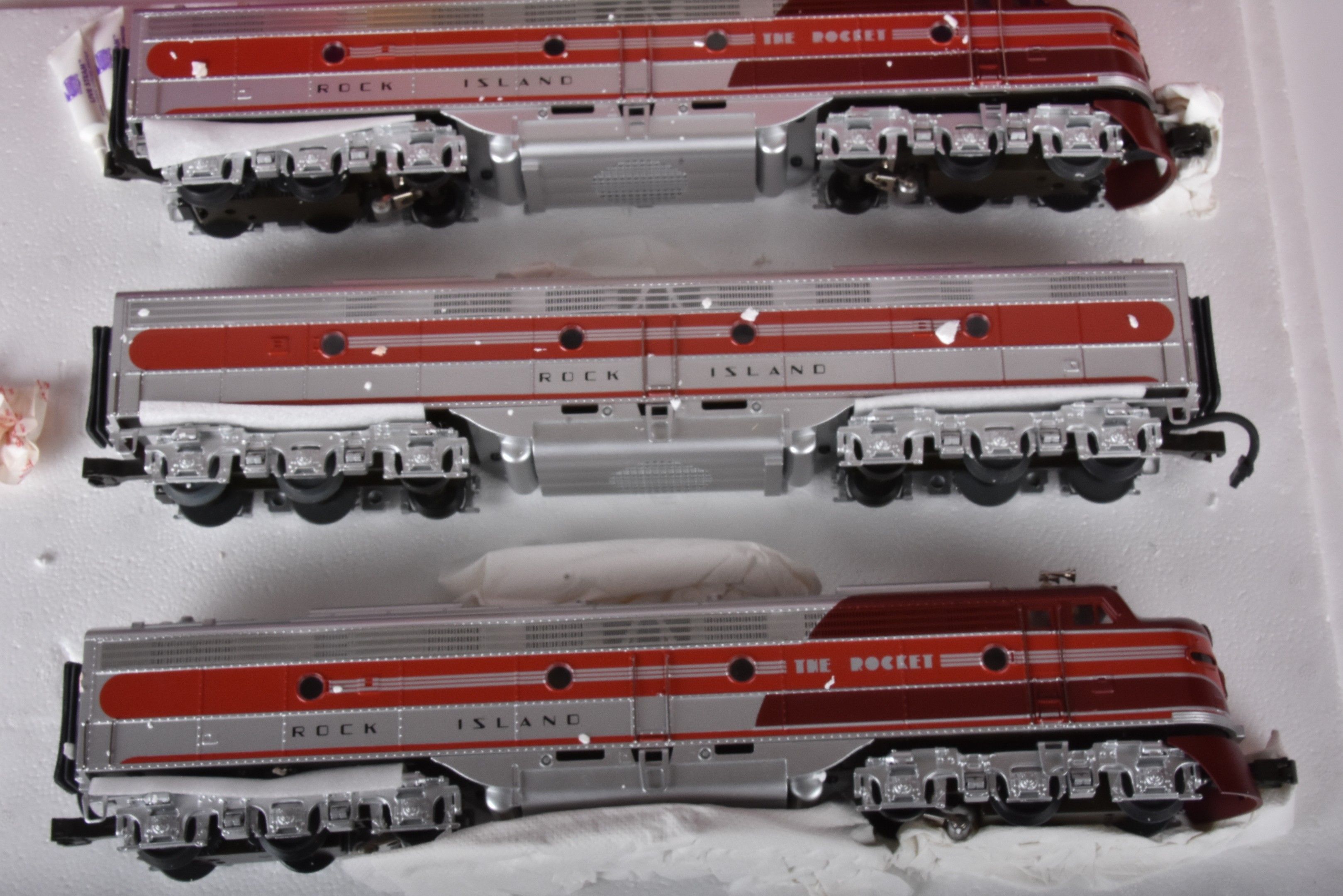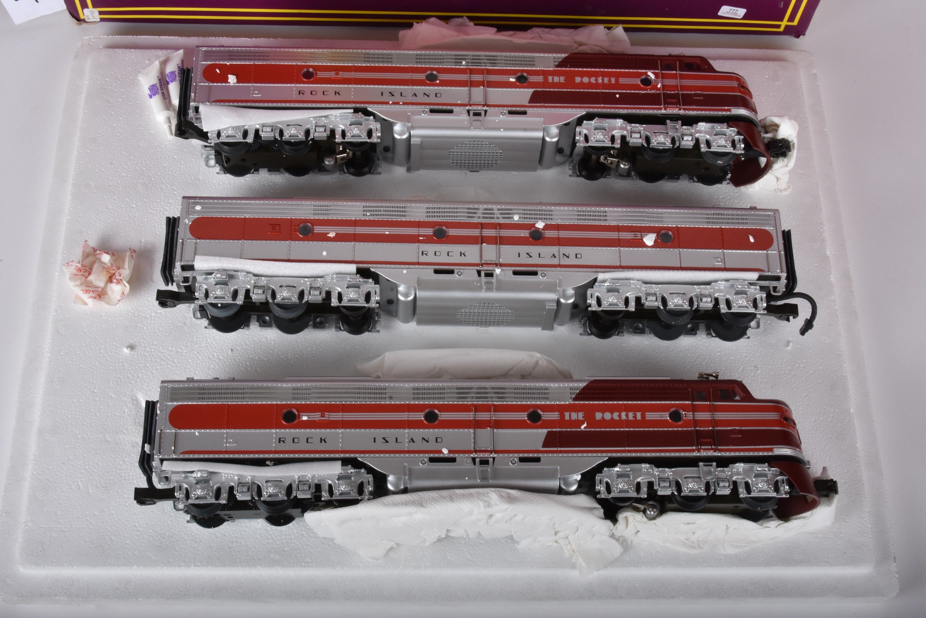 MTH electric Train, Rock Island comprenant deux locomotives et un wagon motorisé TBE en BO