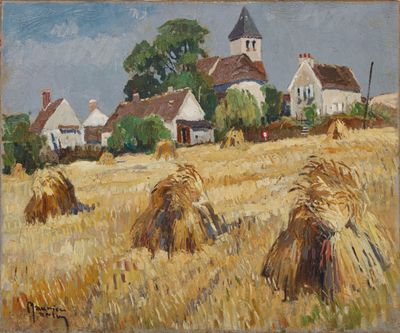 Maurice MARTIN (1894-1978) Meules de foin et village HUILE S…