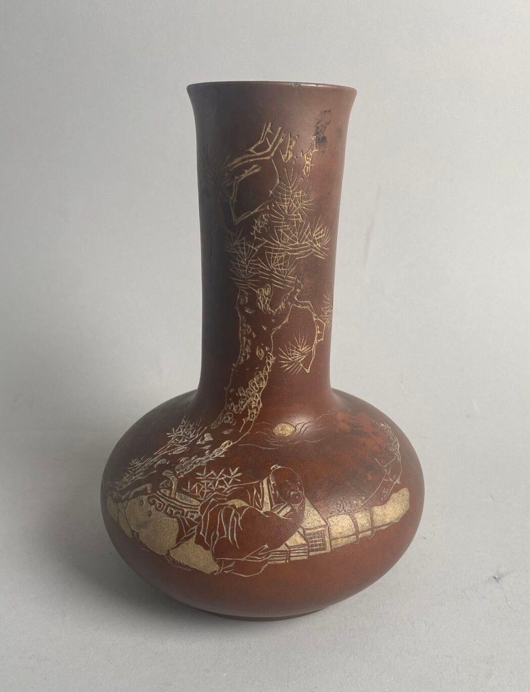 CHINE, Yixing - XXe siècle Vase à panse basse à long col en …