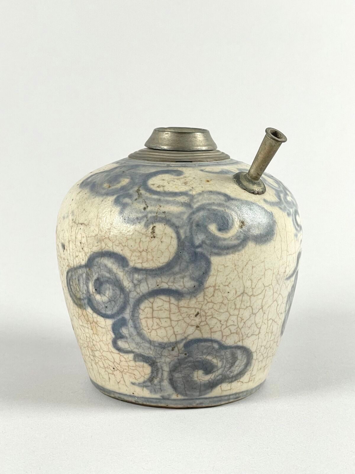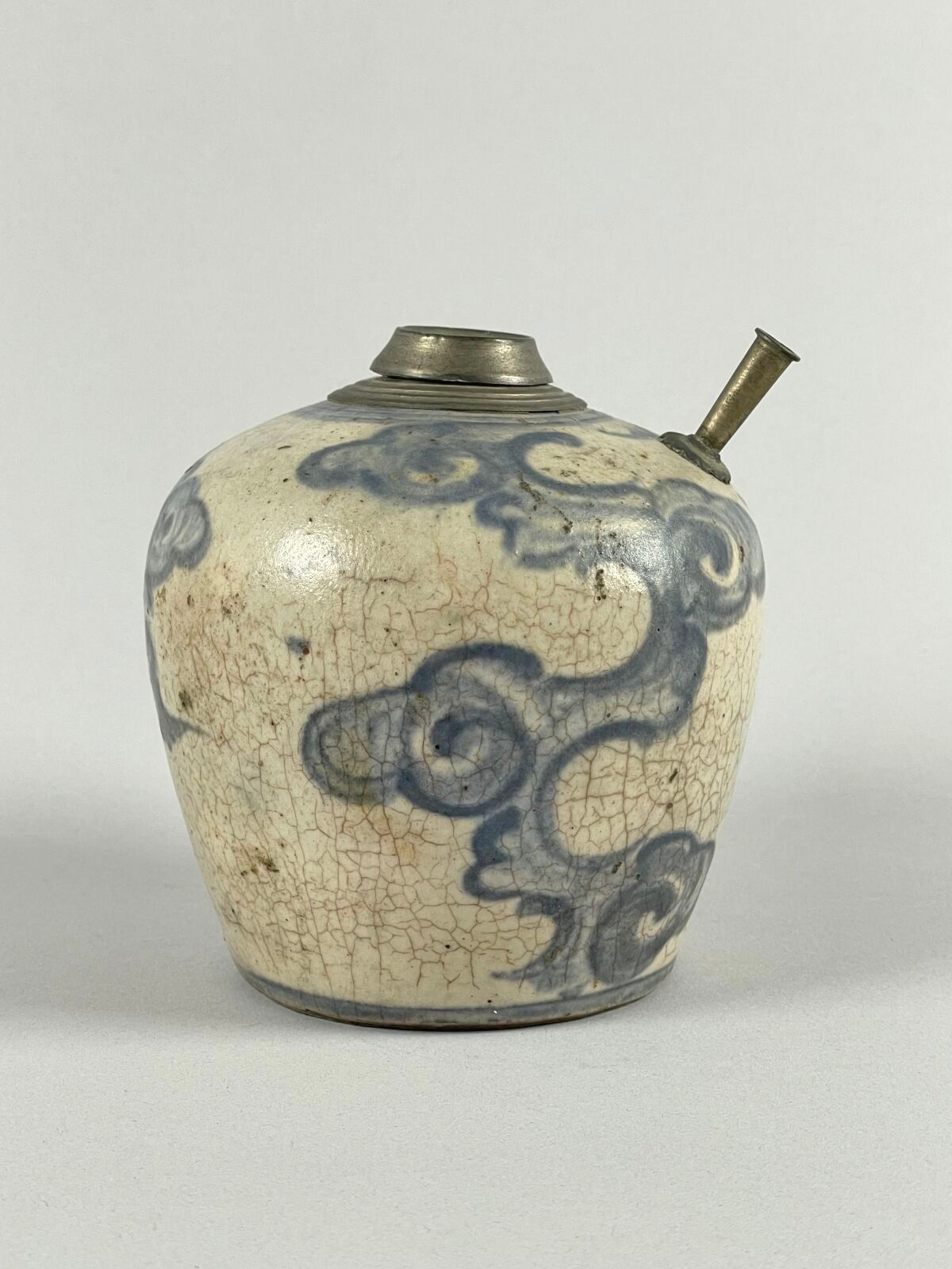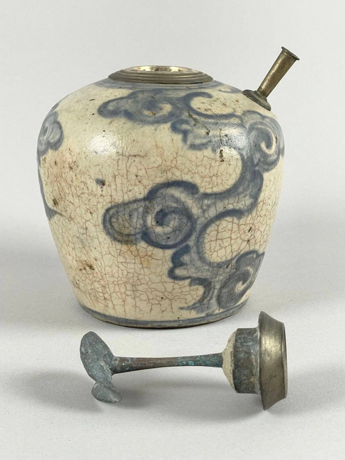 VIETNAM, XIXe siècle Pipe à eau en porcelaine à décor en ble…