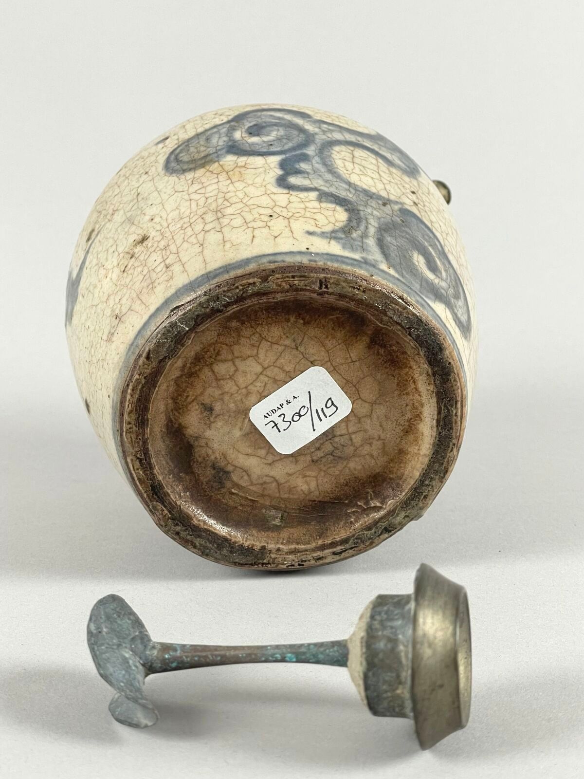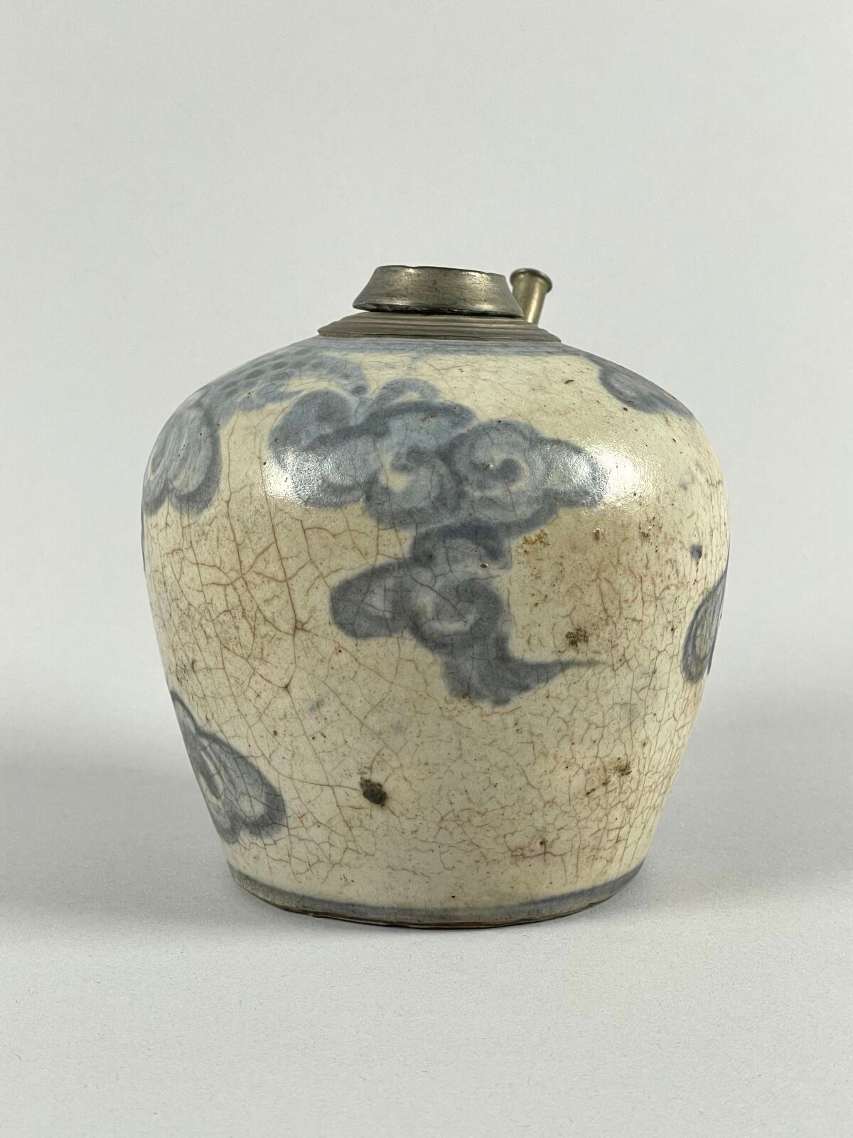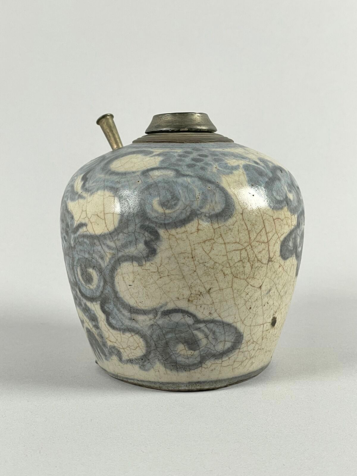 VIETNAM, XIXe siècle Pipe à eau en porcelaine à décor en ble…