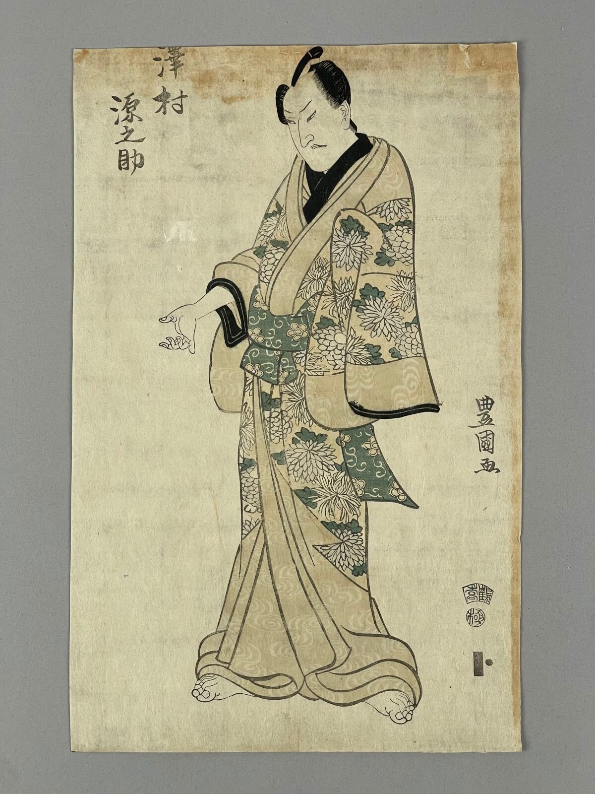 Estampe, oban tate-e,l'acteur Sawamura Gennosuke. Éditeur Kinkyodo. Signée Toyokuni ga.
