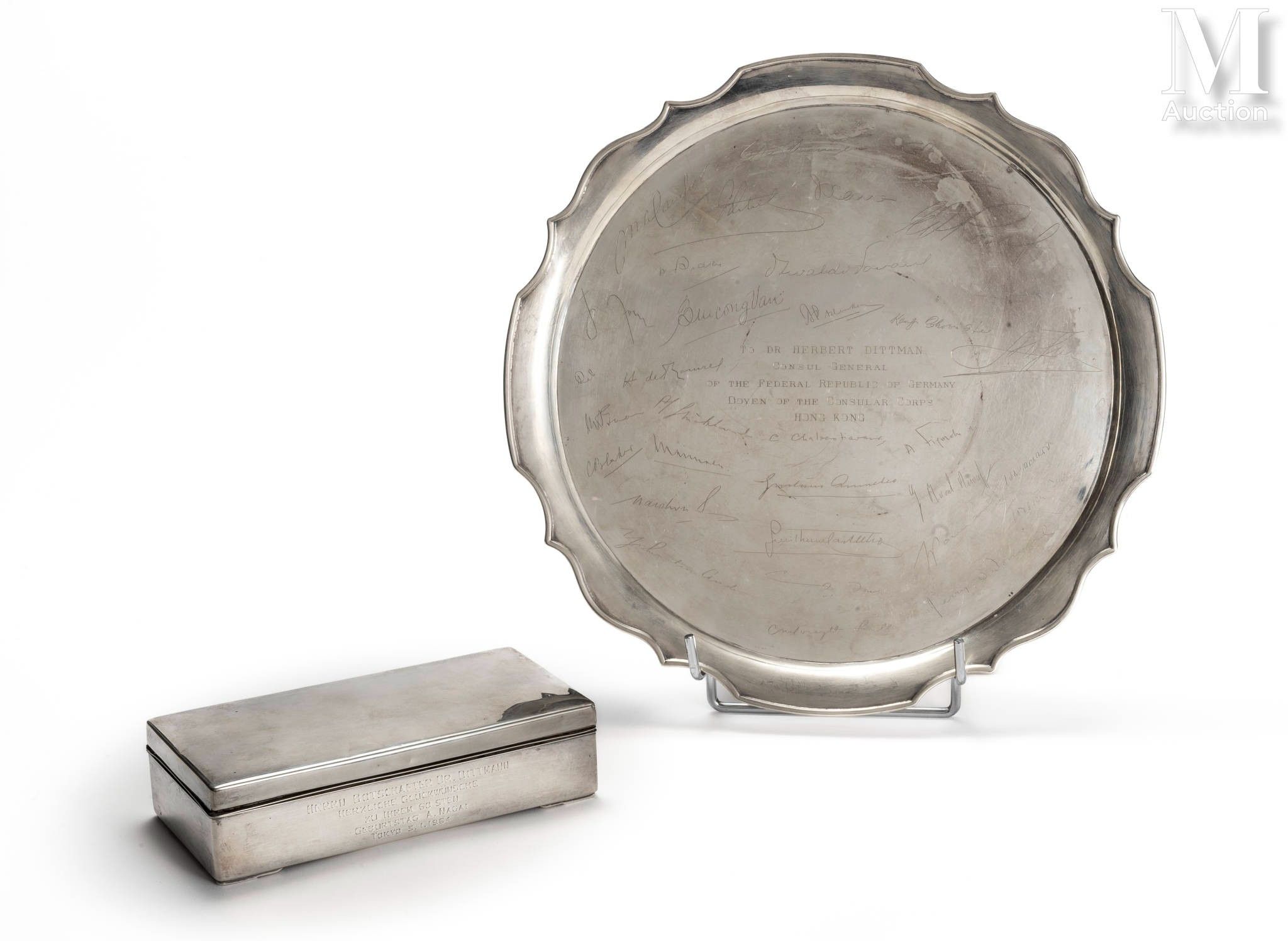 Inscription incisée au centre "To Dr.Herbert Dittman / Consul General / Of the Federal Republic Of Germany / Doyen of the Consular Corps / Hong Kong" entourée de nombreuses signatures gravées.