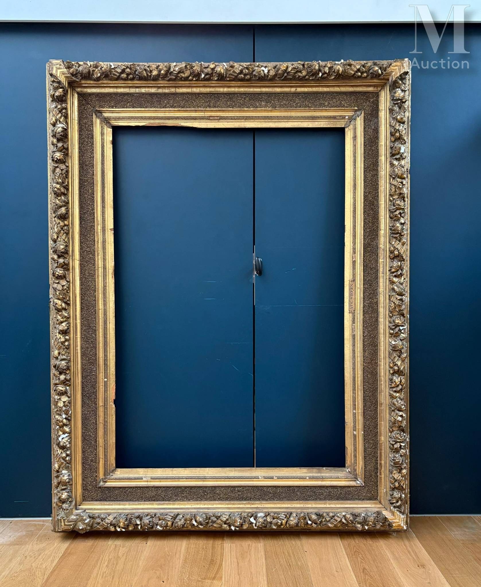 Imposant cadre en bois et stuc doré
