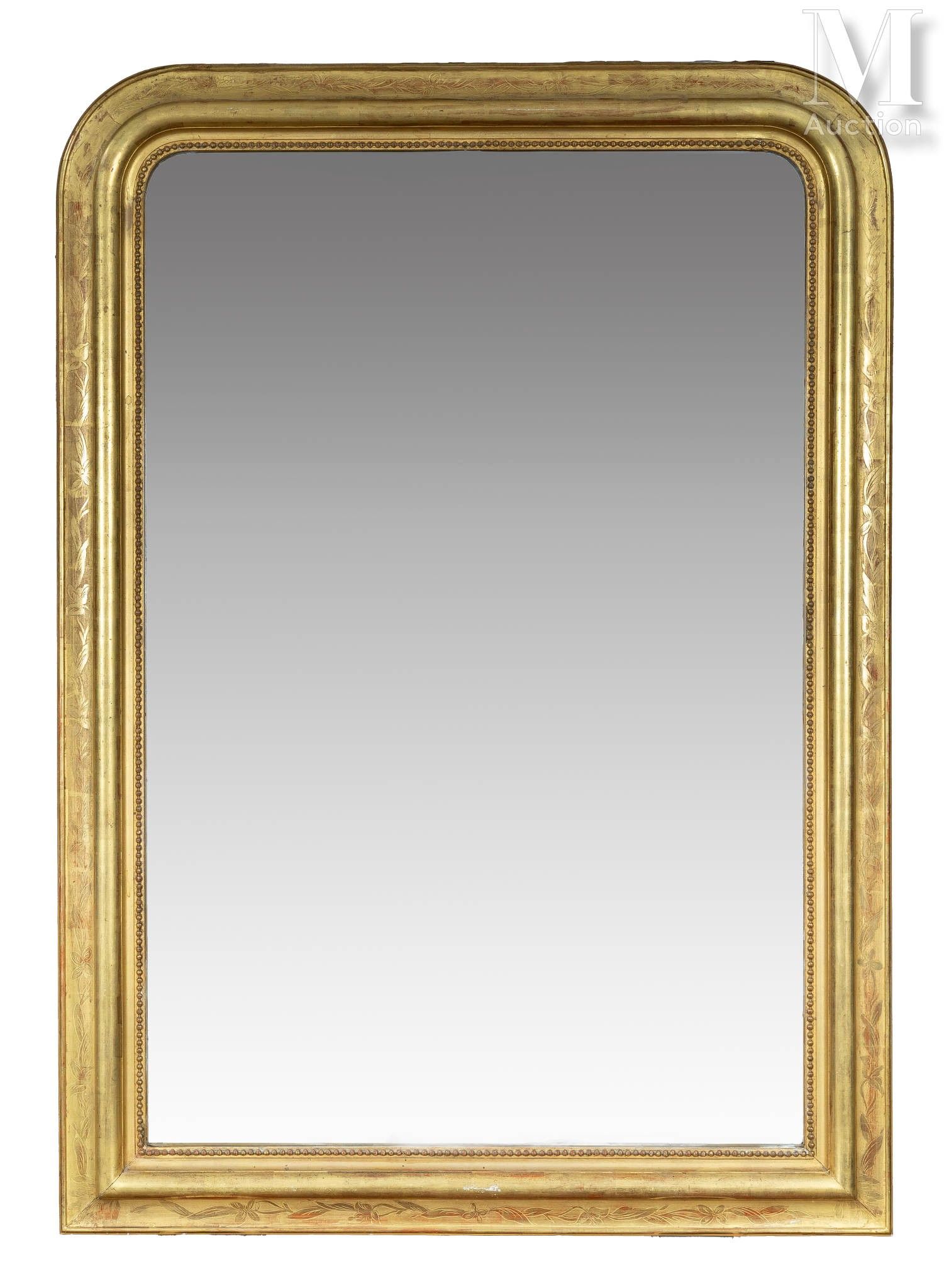 Miroir De forme rectangulaire en bois et stuc dorés à décor …