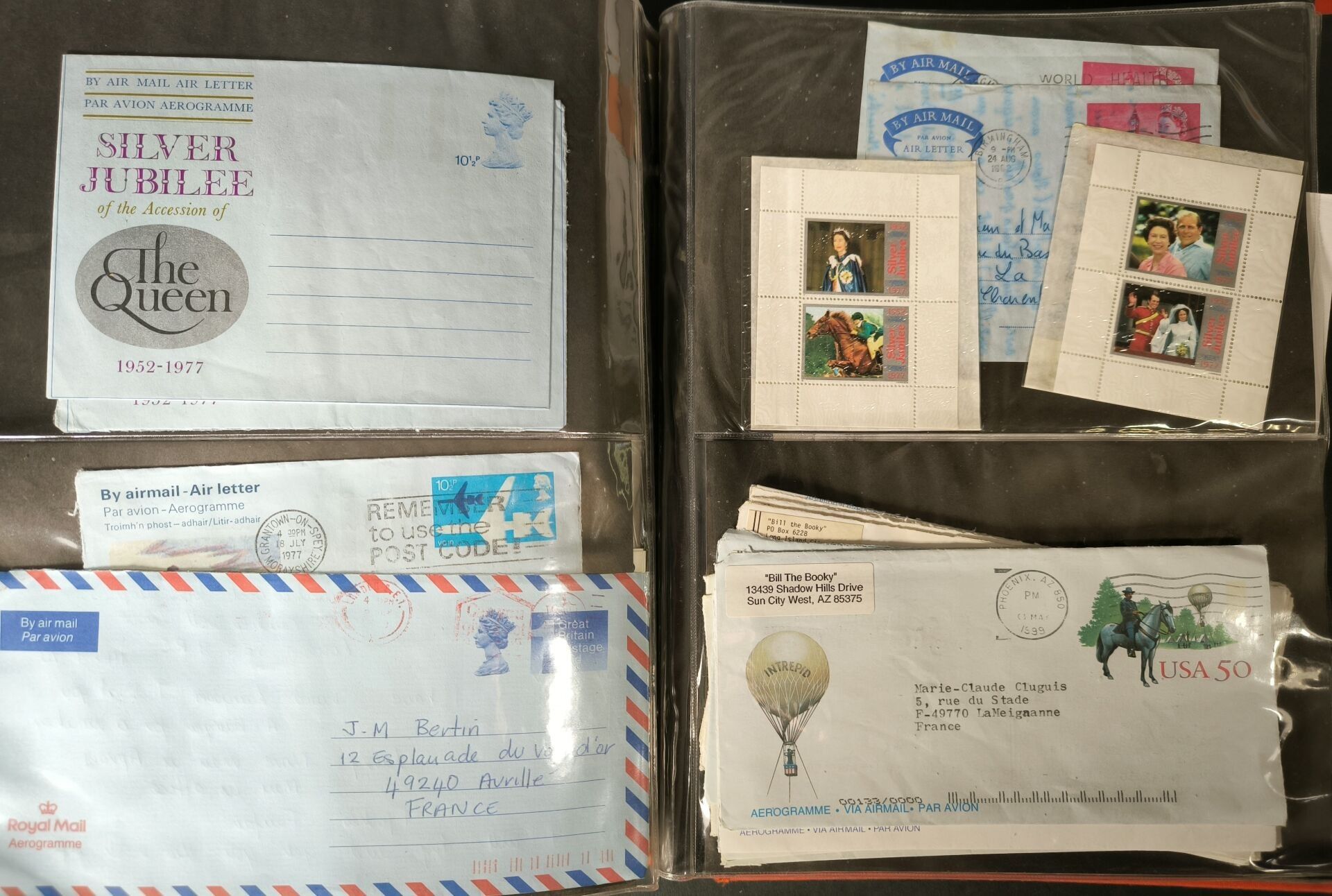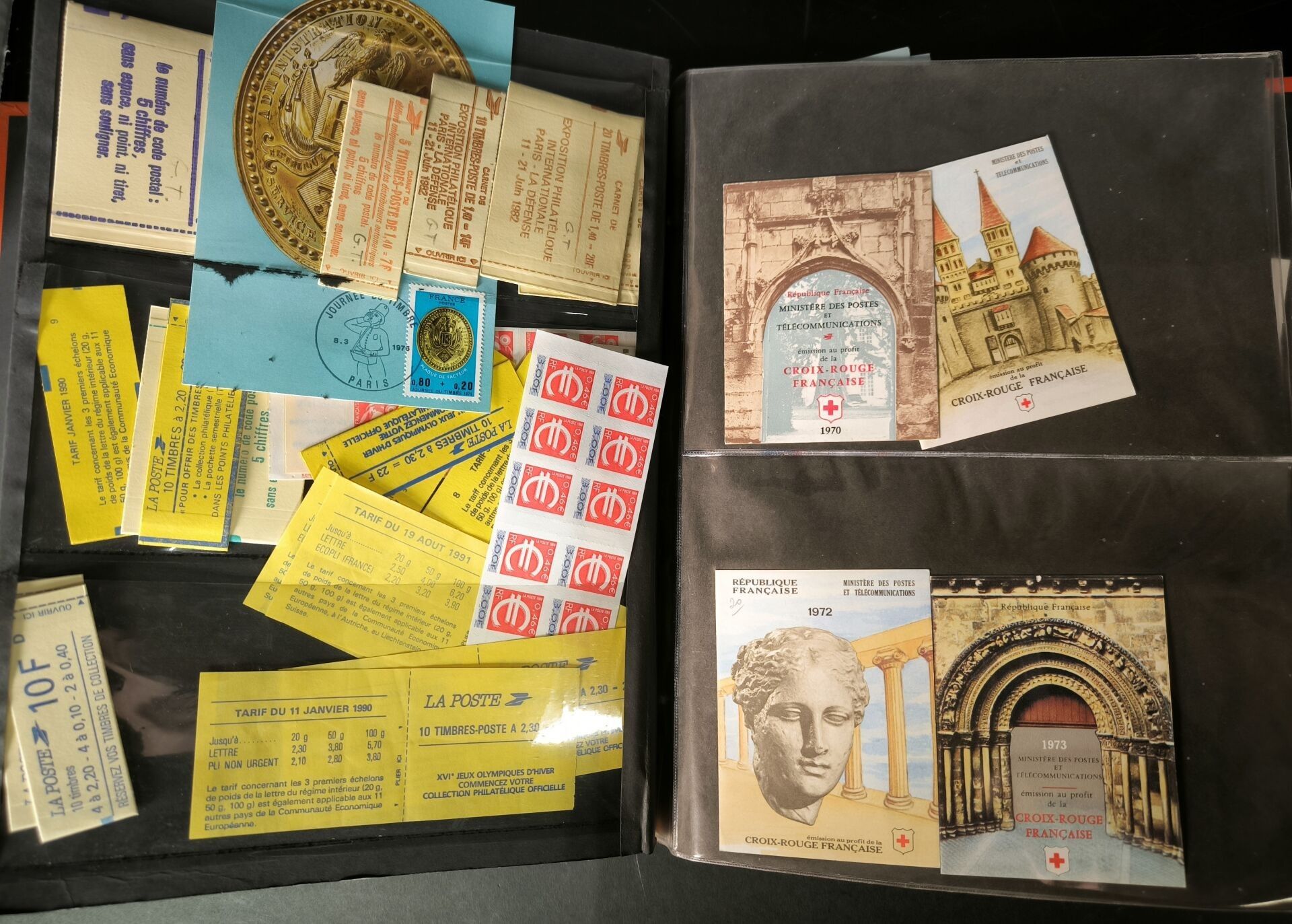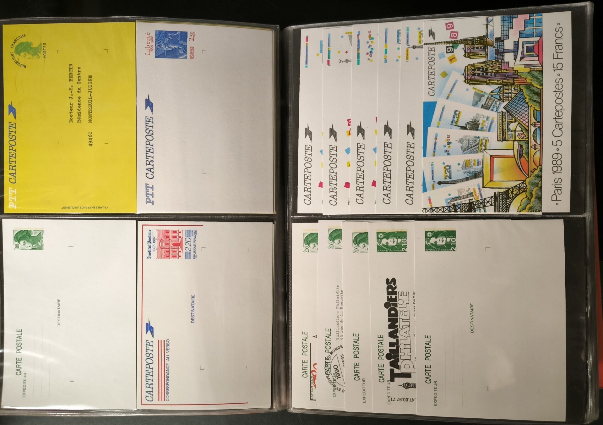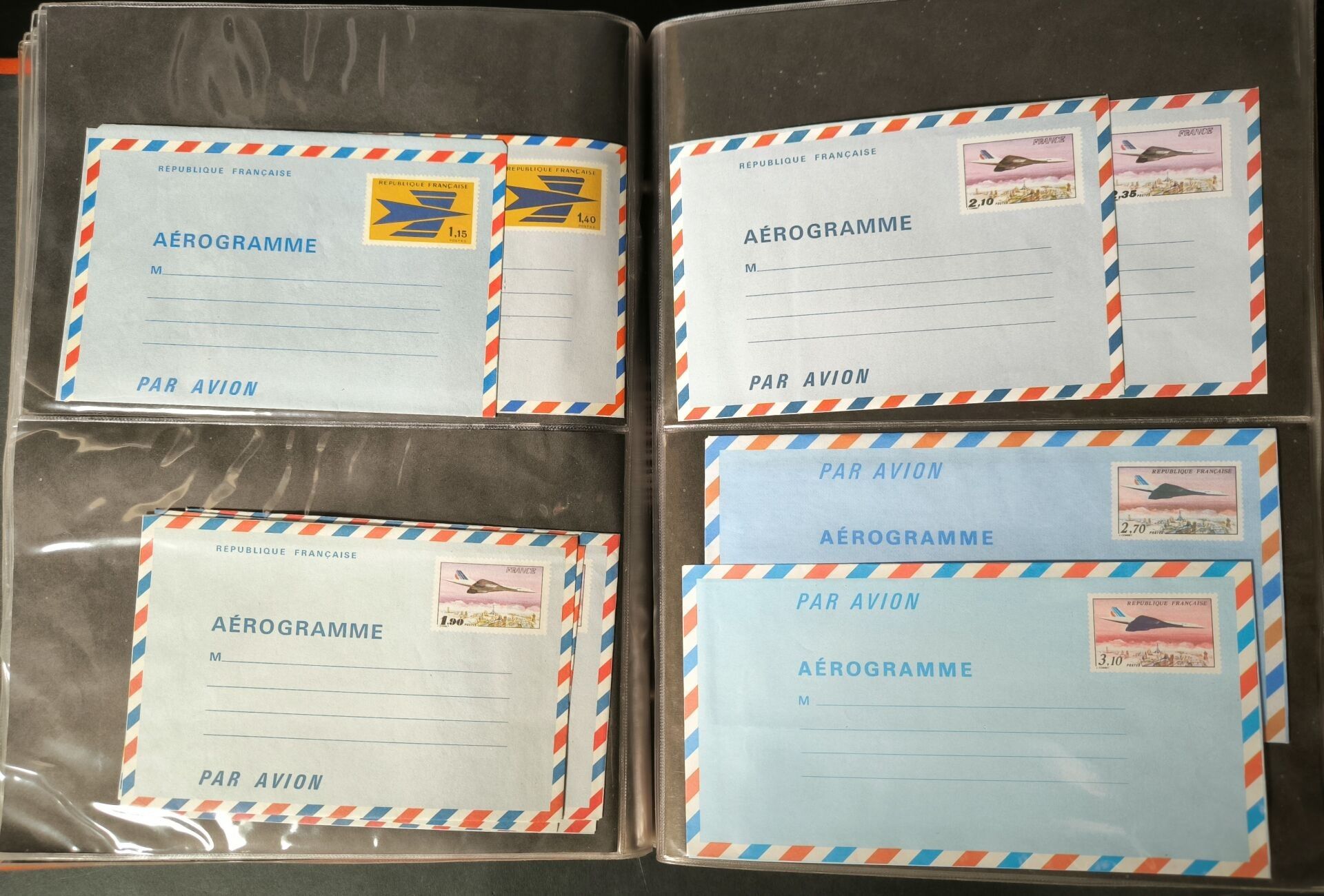 On y joint : 1 gros album contenant des entiers postaux, des aérogrammes, des carnets de France commémoratifs. Faciale, etc...