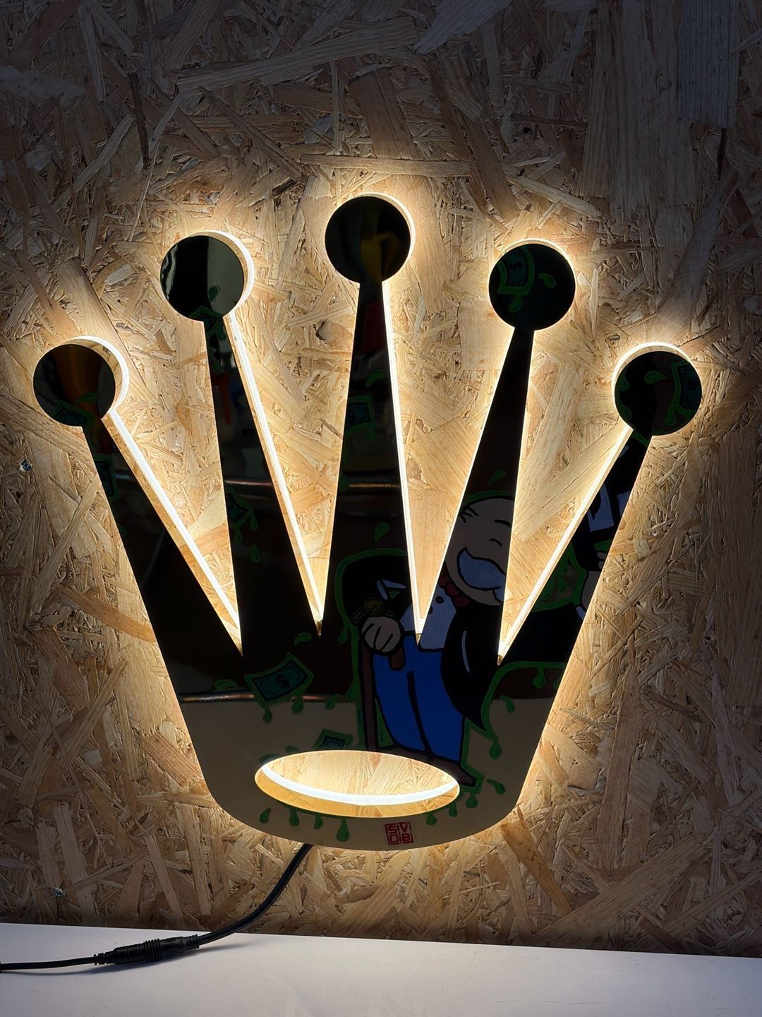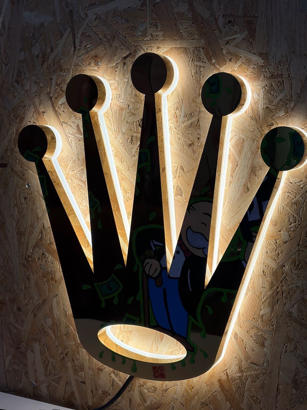 Technique : Enseigne lumineuse concessionnaire Rolex customisée au Posca.