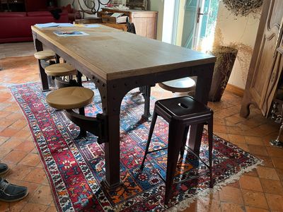 Table de salle à manger en chêne et fer av c sièges intégrée…