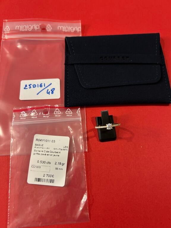 COURBET Bague en or jaune 18 carats ornée d'un diamant , l'a…