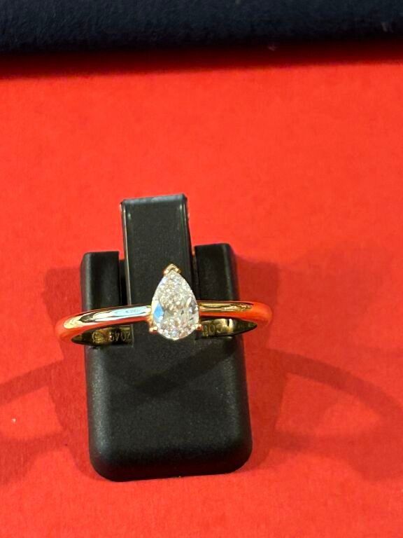 COURBET Bague en or rose 18 carats ornée d'un diamant taillé en poire ( pierre de synthèse) Taille 53 0,3 cts Poids brut total 2,4 g
