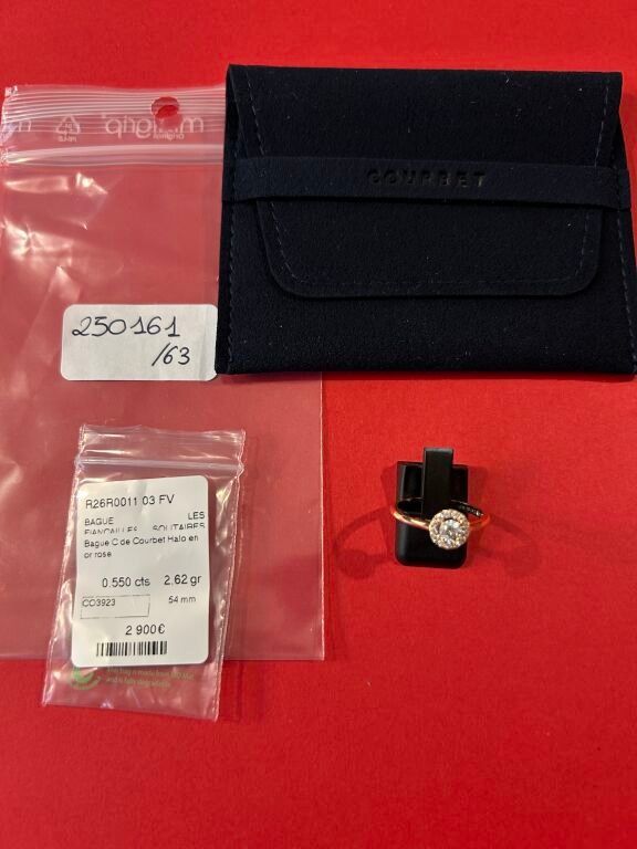 COURBET Bague en or rose 18 carats ornée d'un diamant entour…