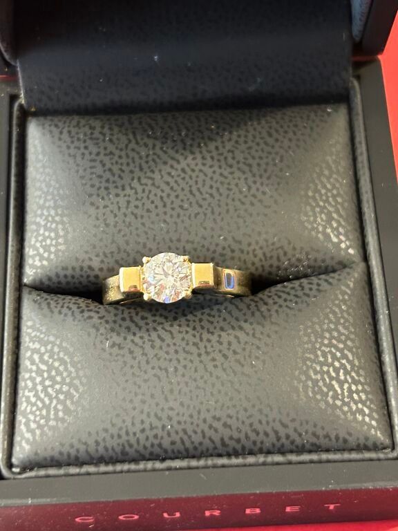 Bague solitaire en or jaune 18 carats ornée d'1 diamant (1,010 carats )(pierre de synthèse) dans son écrin