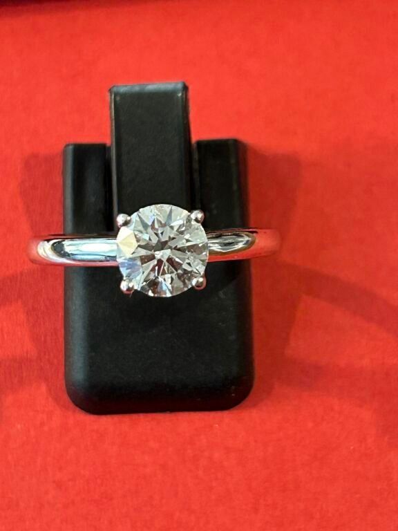 Bague solitaire en or blanc 18 carats sertie d'un diamant ( pierre de synthèse ) pesant 1,090 carat.