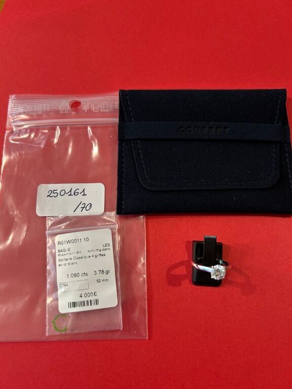 COURBET Bague solitaire en or blanc 18 carats sertie d'un di…