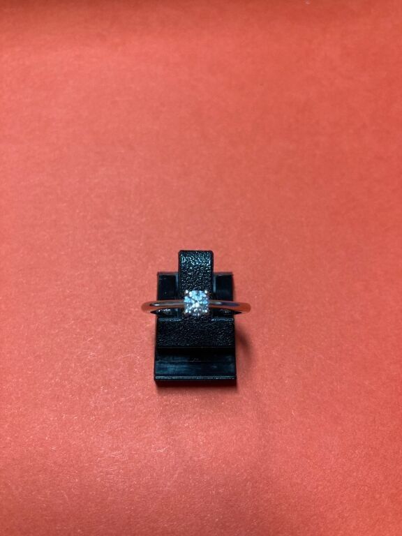 Bague solitaire en or blanc 18 carats ornée d'un diamant (pierres de synthèse) pesant 0,200 carats.