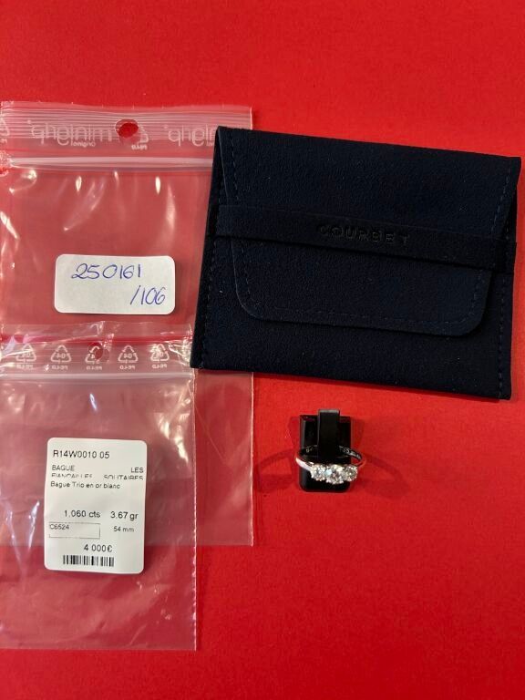 COURBET Bague trilogie en or blanc 18 carats ornée de trois …
