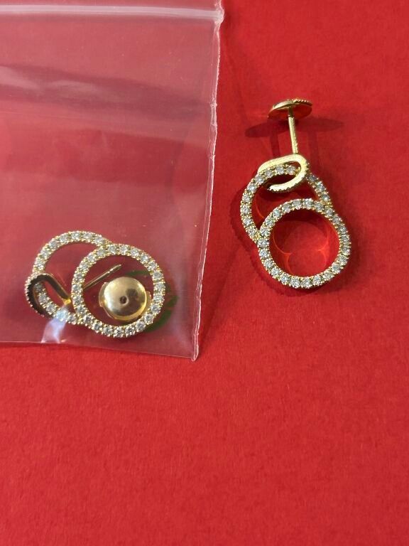 Boucles d'oreilles pendantes en or jaune 18 carats pavée de diamants ( pierres de synthèse ) le tout pesant 0,780 carat. Fermoir Alpa