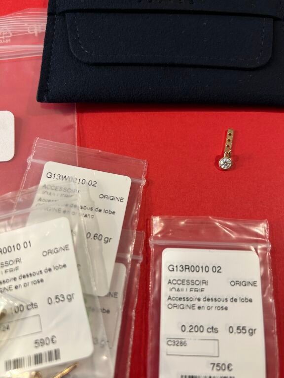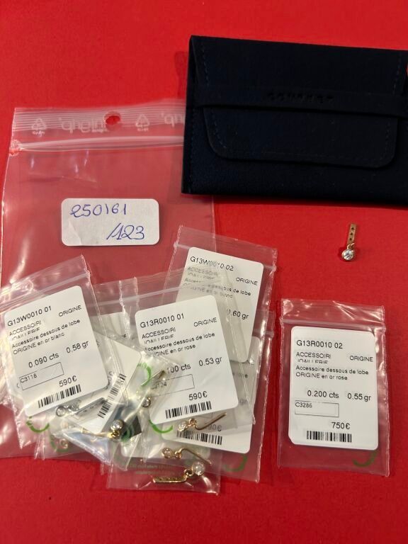 Lot de 11 accessoires de dessous de lobe en or 18 carats et diamants ( pierres de synthèse ).