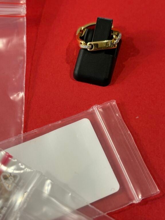 Lot de 17 bagues en or 18 carats blanc, jaune ou rose présentant 4 plaques reliées entre elles par un anneau dont certains sont pavés de diamants ( pierres de synthèse ).