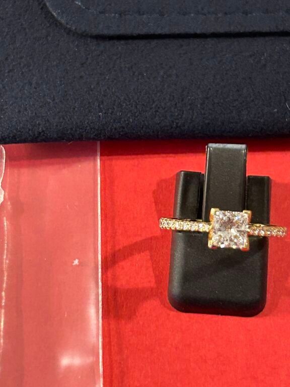 Bague solitaire en or jaune 18 carats ornée d'un diamant sur un demi anneau pavé (pierre de synthèse) le tout pesant 0,930 carats.