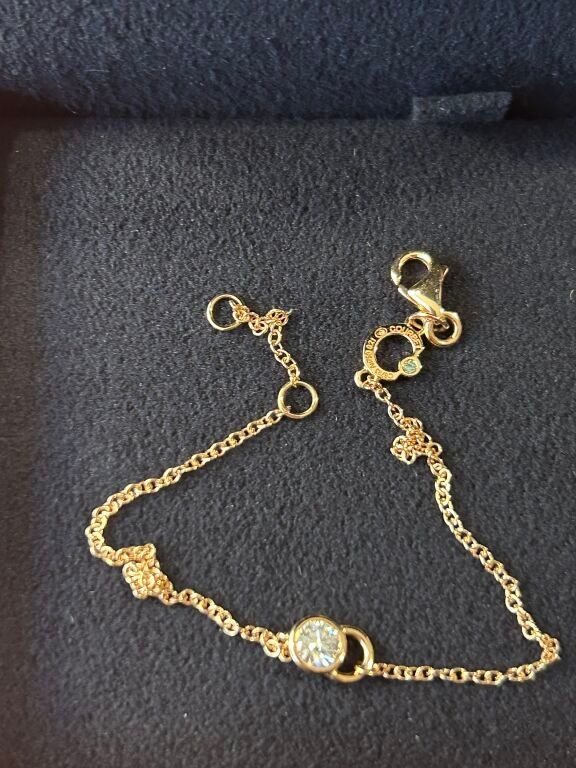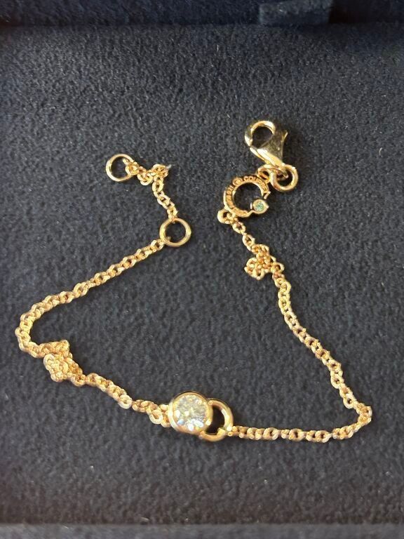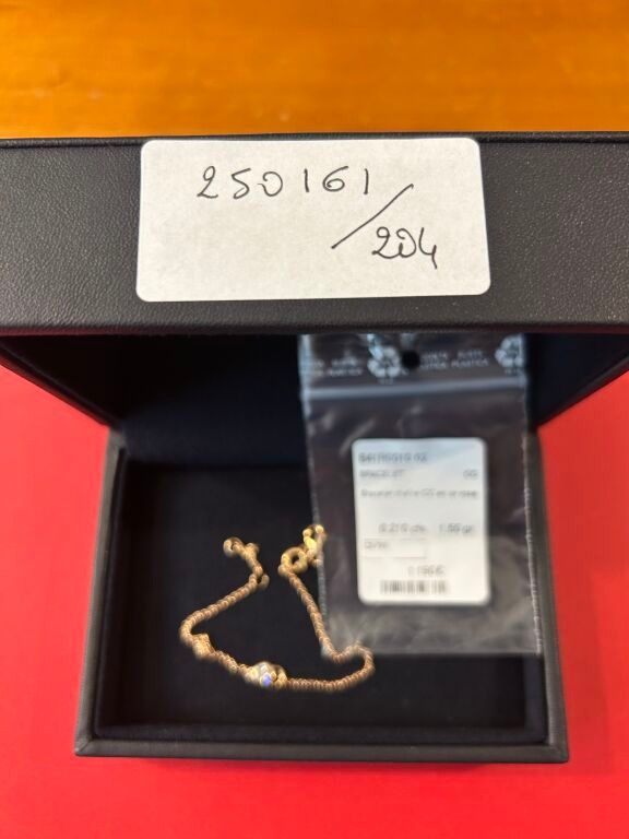 Bracelet chaîne en or rose 18 carats orné d'1 petit diamant ( 0,21 carats) ( pierres de synthèse) dans son écrin