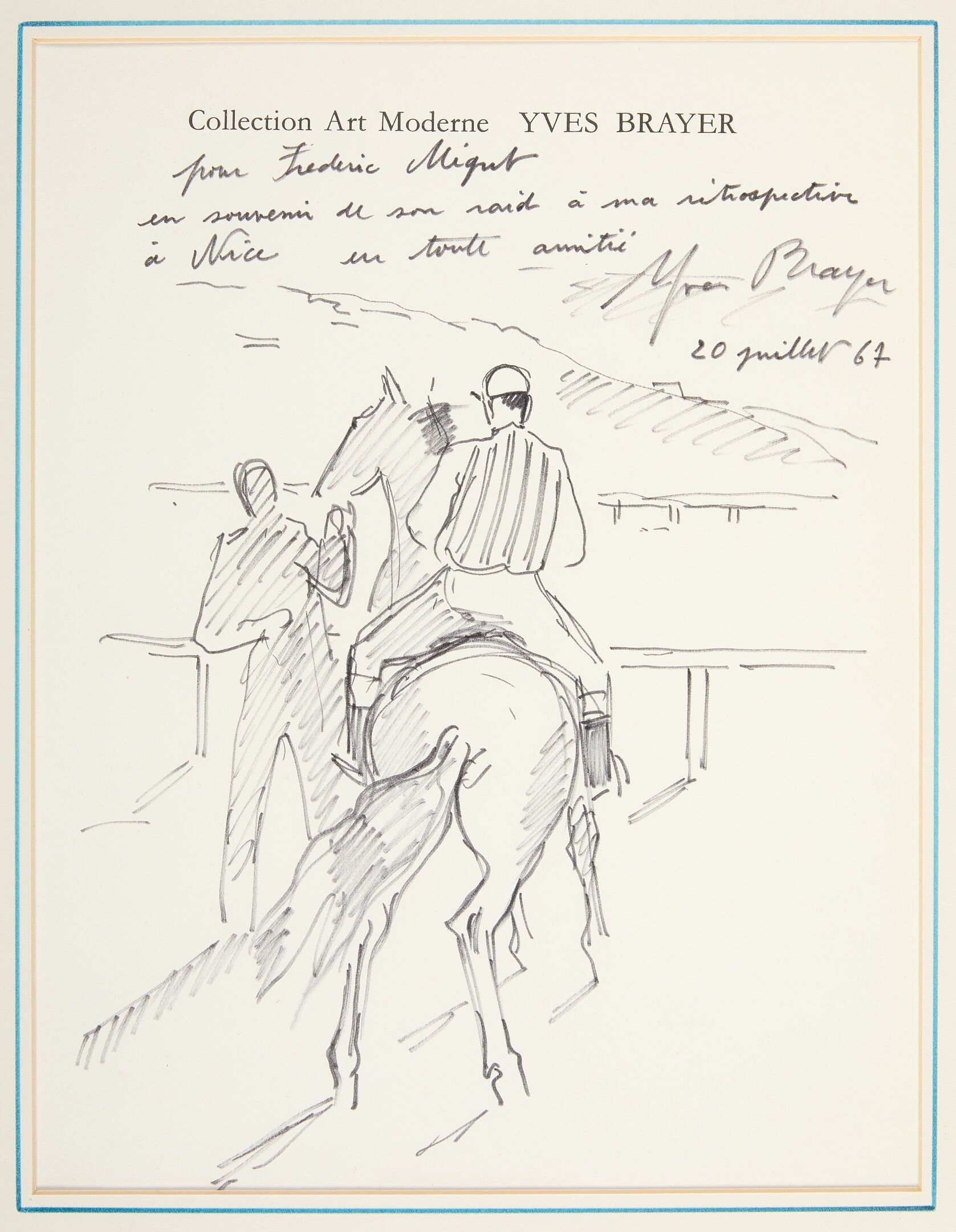 Dessin et feutre sur papier, signé, daté du 20 juillet 67 et dédicacé « Pour Frédéric Miguet en souvenir de son raid à ma rétrospective à Nice en toute amitiés ».