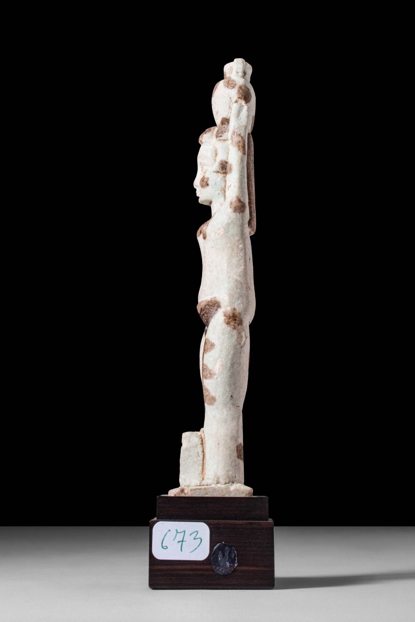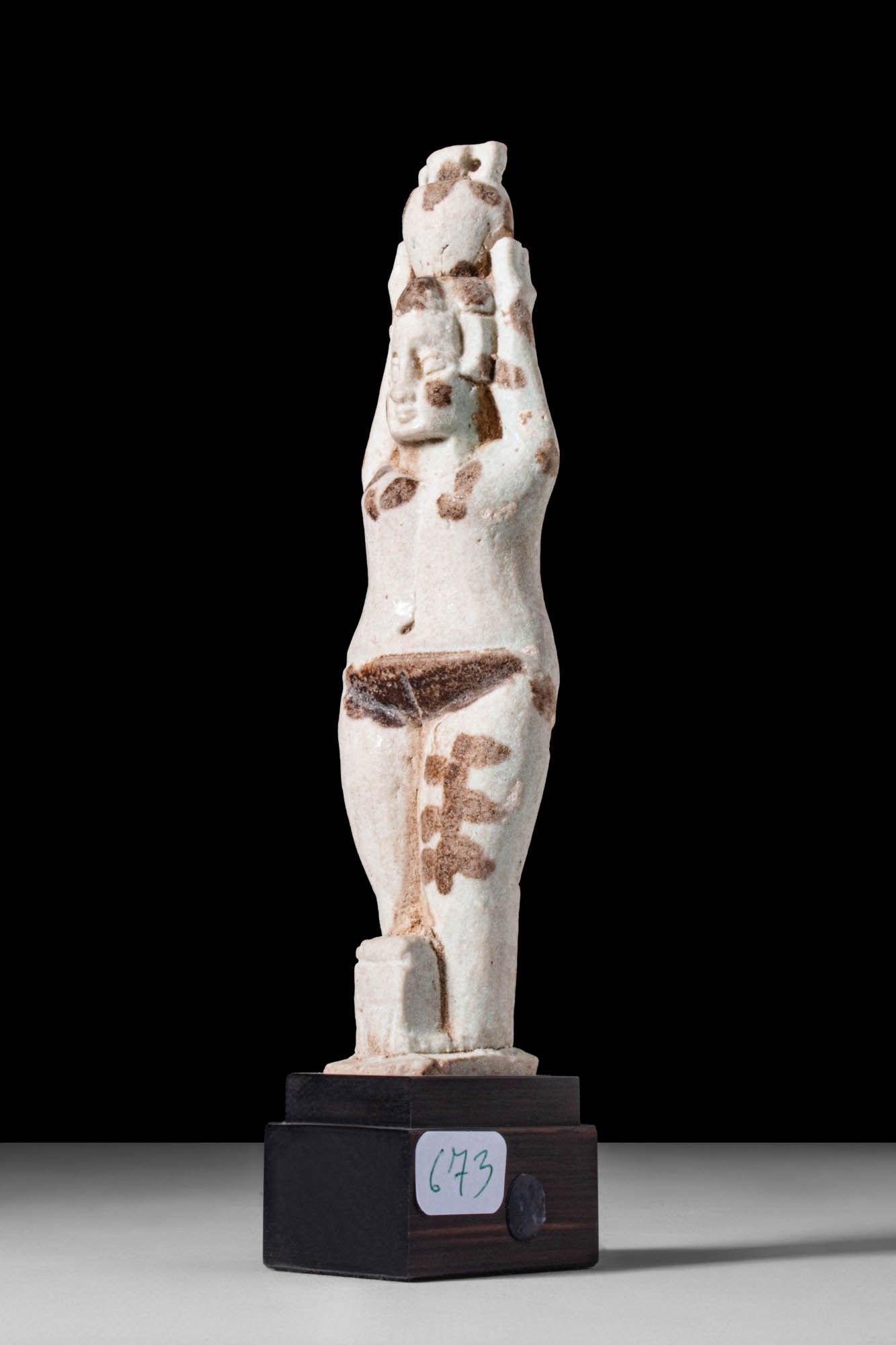 FIGURE ÉGYPTIENNE EN FAÏENCE REPRÉSENTANT UNE FEMME NUE TENA…