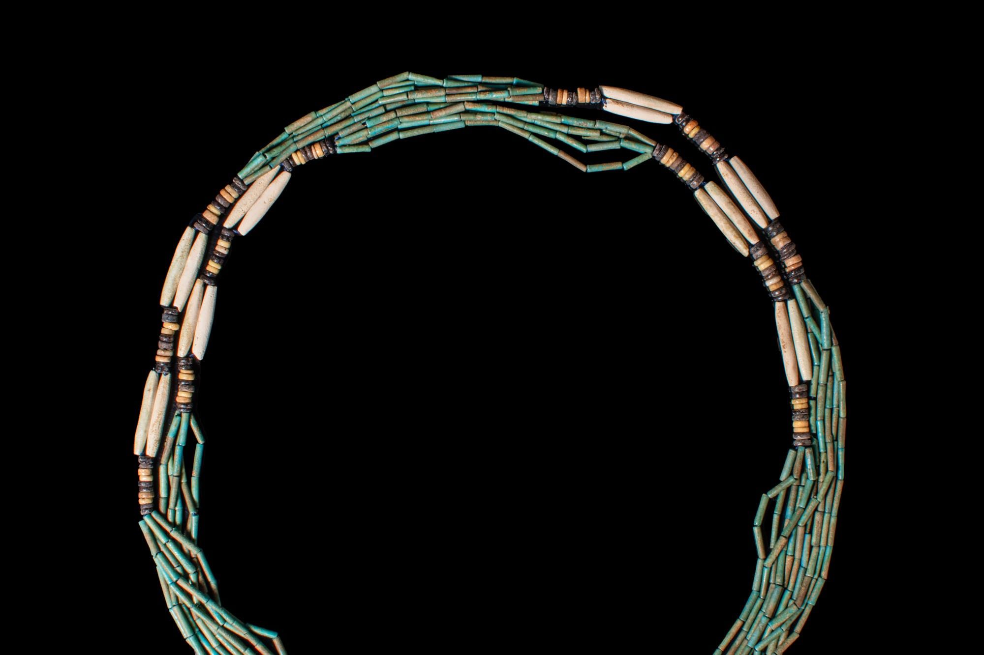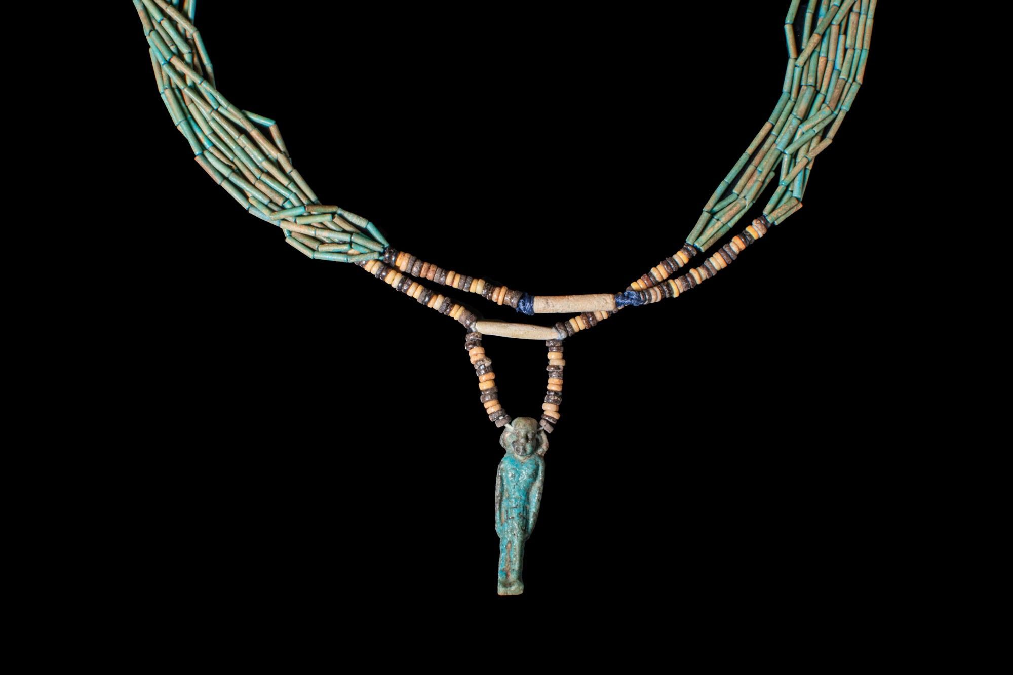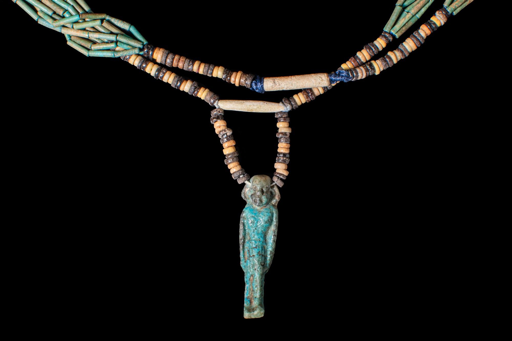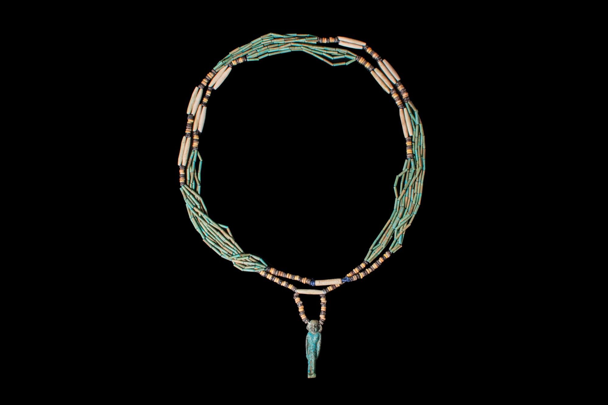 Premium COLLIER EN FAIENCE EGYPTIENNE AVEC PENDENTIF AMULETTE.