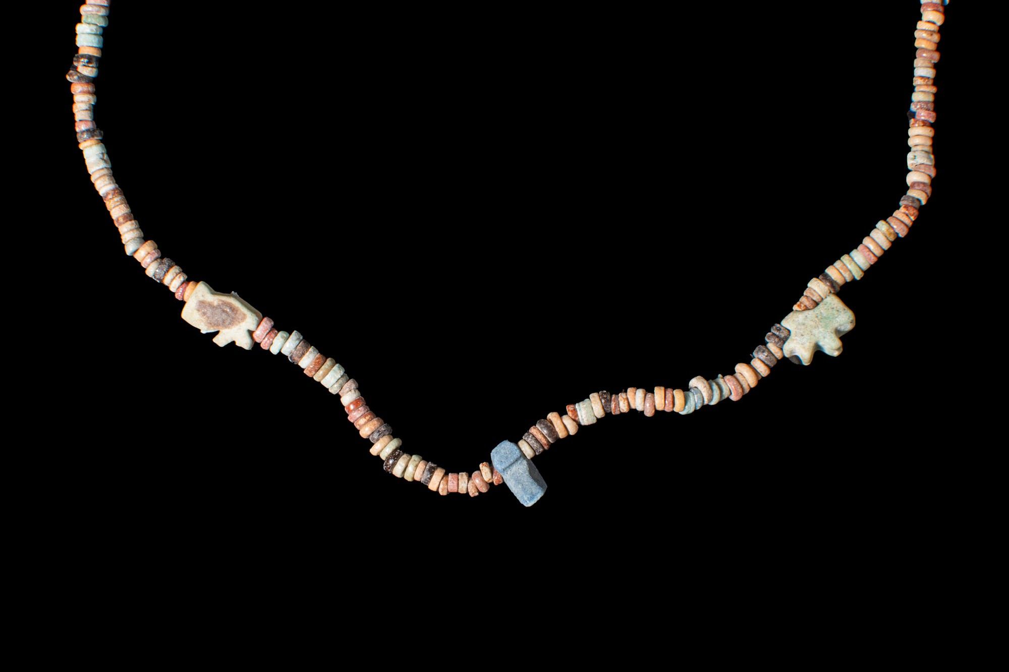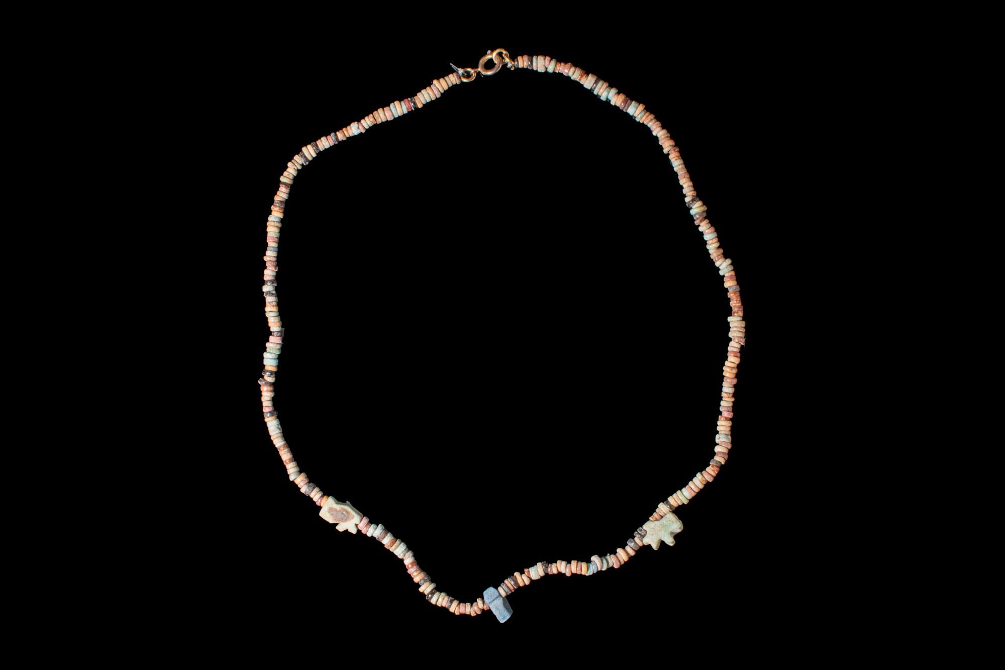 COLLIER DE FAIENCE EGYPTIENNE AVEC PERLES DE ROCAILLE ET AMU…