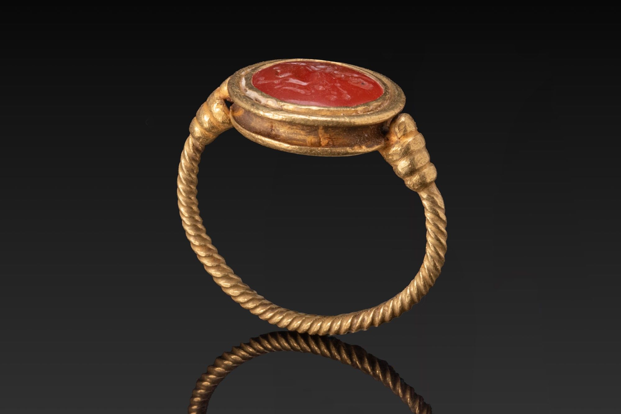 Premium ANNEAU ROMAIN EN OR AVEC INTAILLE EN CORNALINE REPRÉSENTANT …