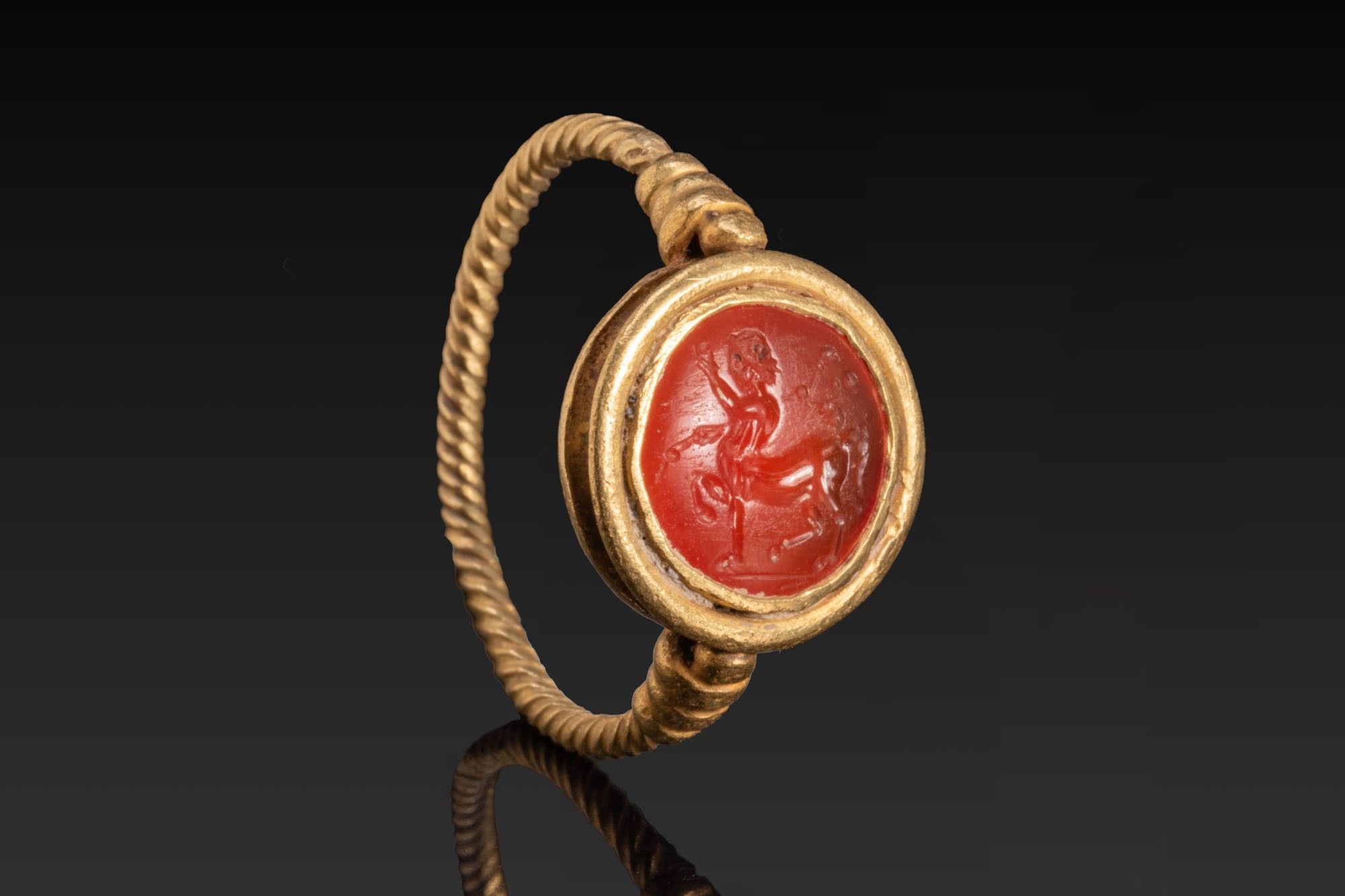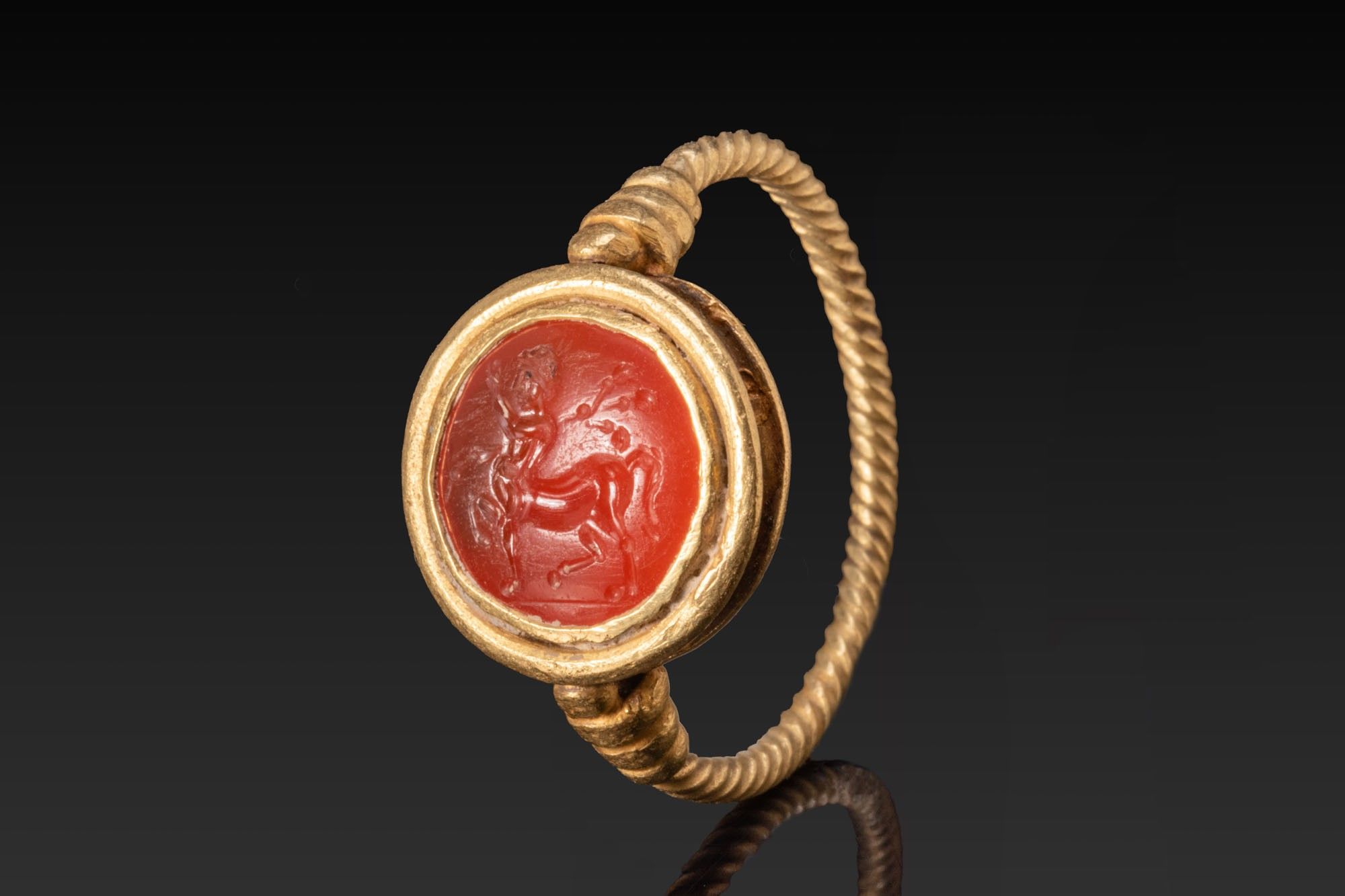 ANNEAU ROMAIN EN OR AVEC INTAILLE EN CORNALINE REPRÉSENTANT UN CENTAURE.