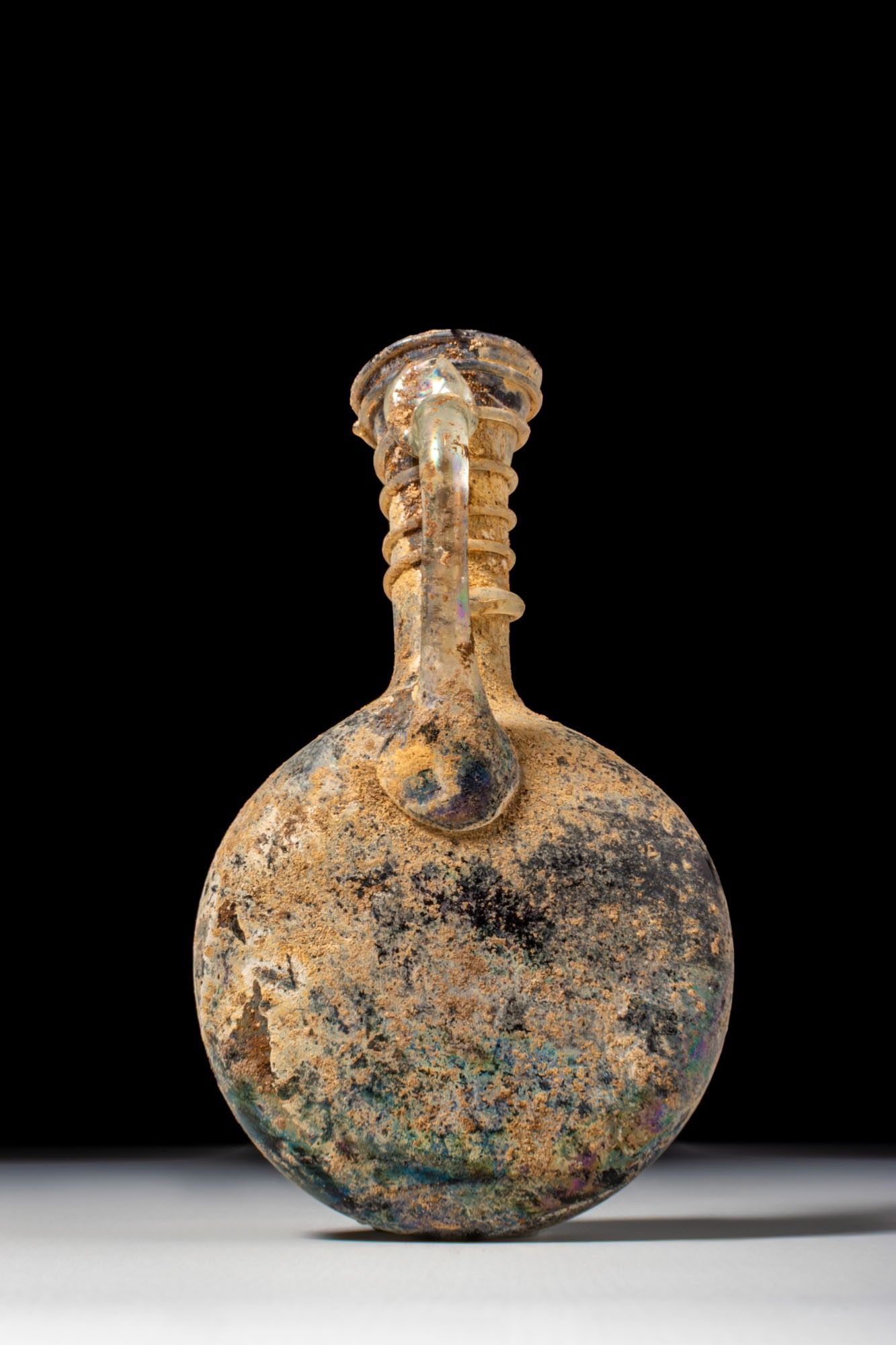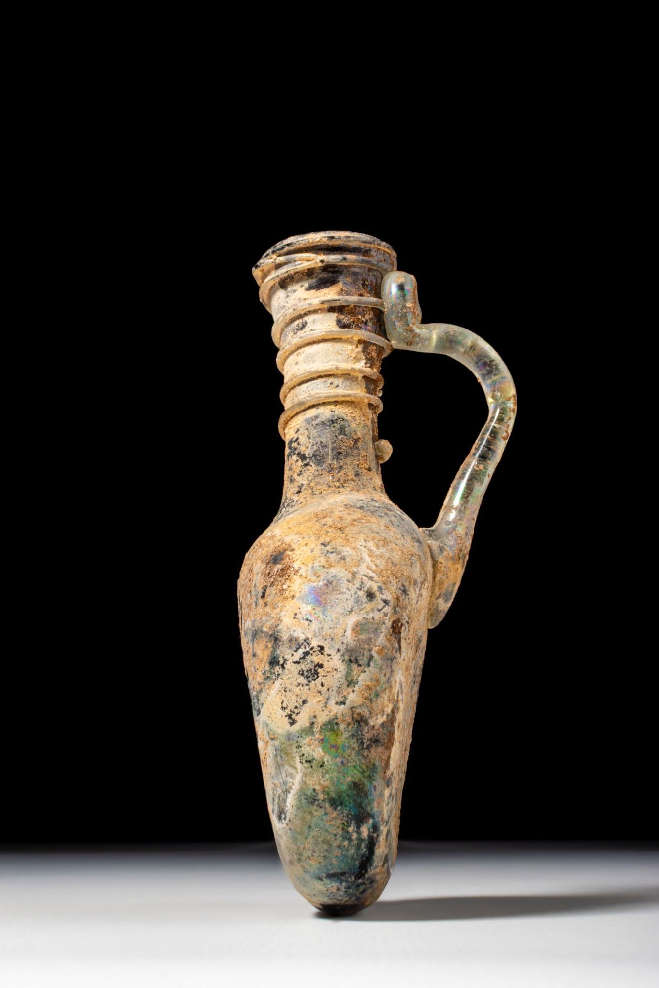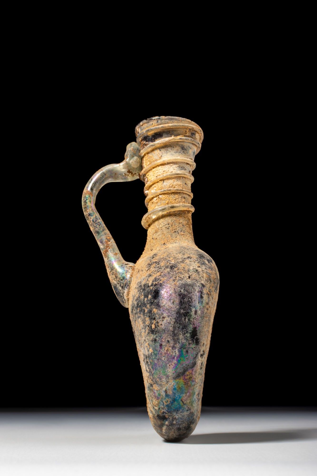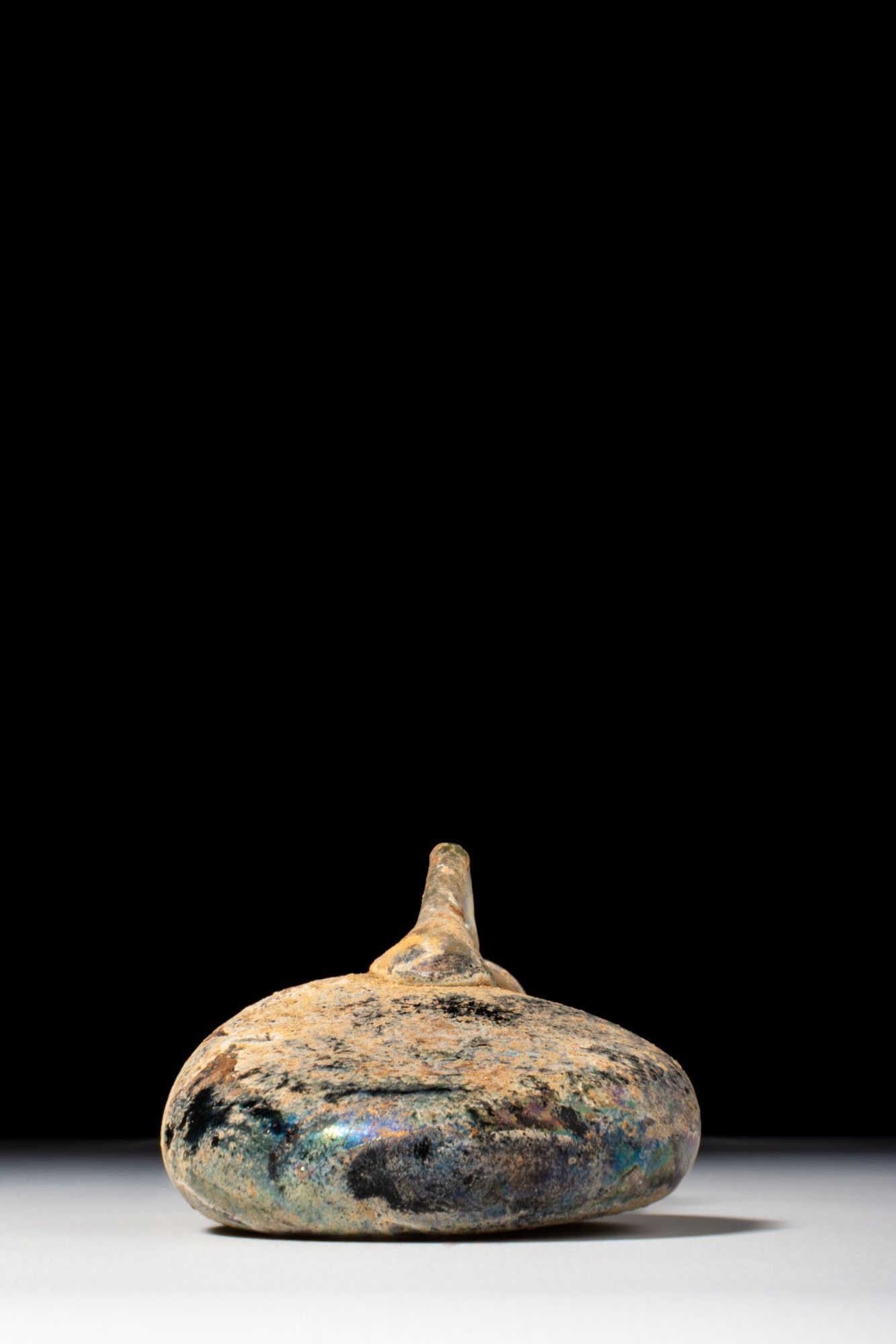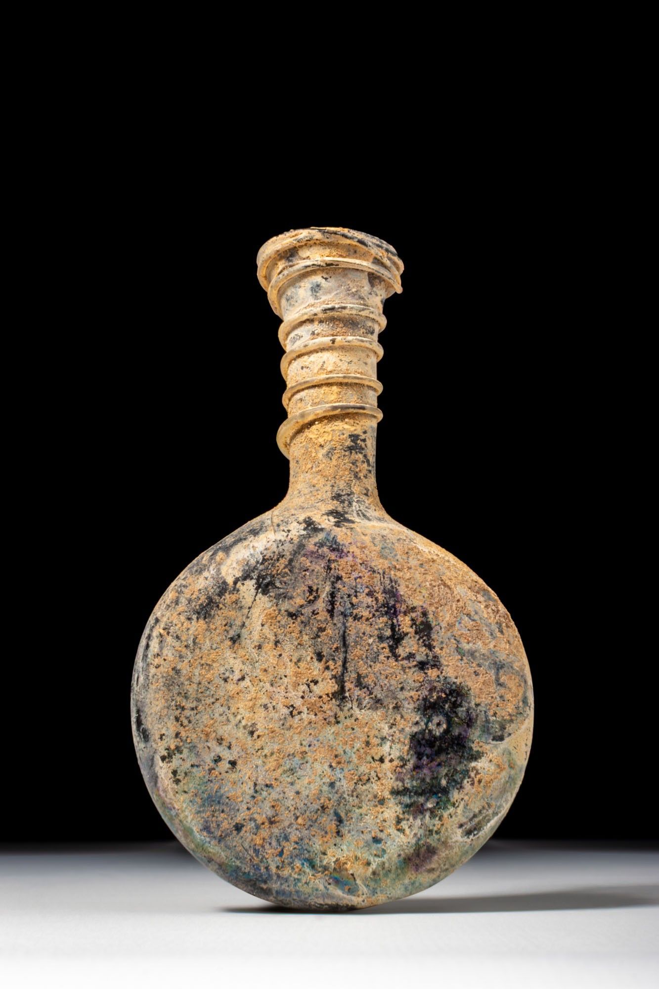 UNGUENTARIUM EN VERRE DE L'ÉPOQUE ROMAINE TARDIVE.