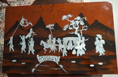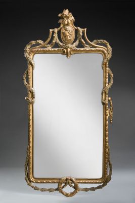 Miroirs anciens, panneaux peints et décors muraux en relief