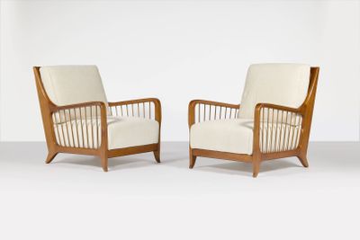 Gio PONTI Rare paire de fauteuils – circa 1940 Structure en …