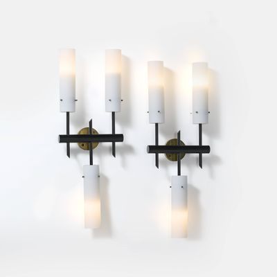 Angelo LELII Paire d'appliques - circa 1955 Structure en mét…